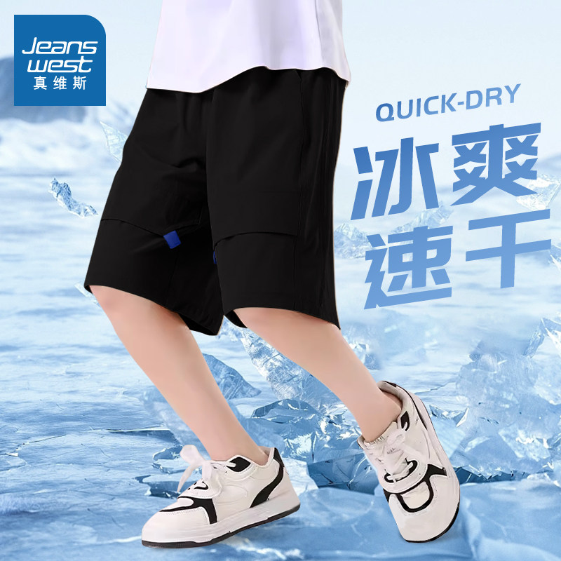 真维斯男童速干短裤儿童裤子夏季薄款2025新款男孩冰丝工装五分裤