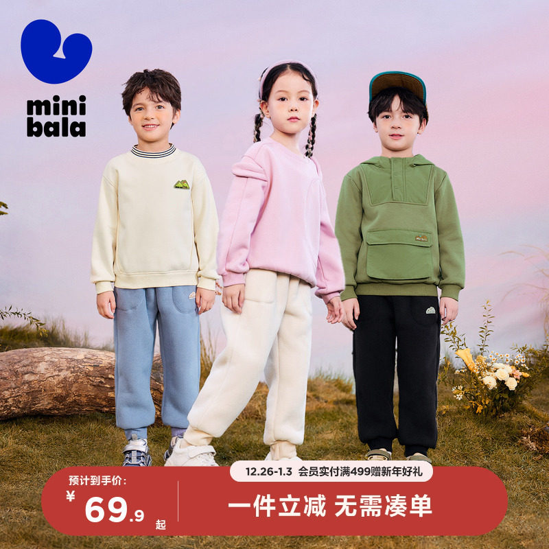 【抗静电】迷你巴拉巴拉男童女童裤子冬加绒宝宝儿童厚摇粒绒长裤
