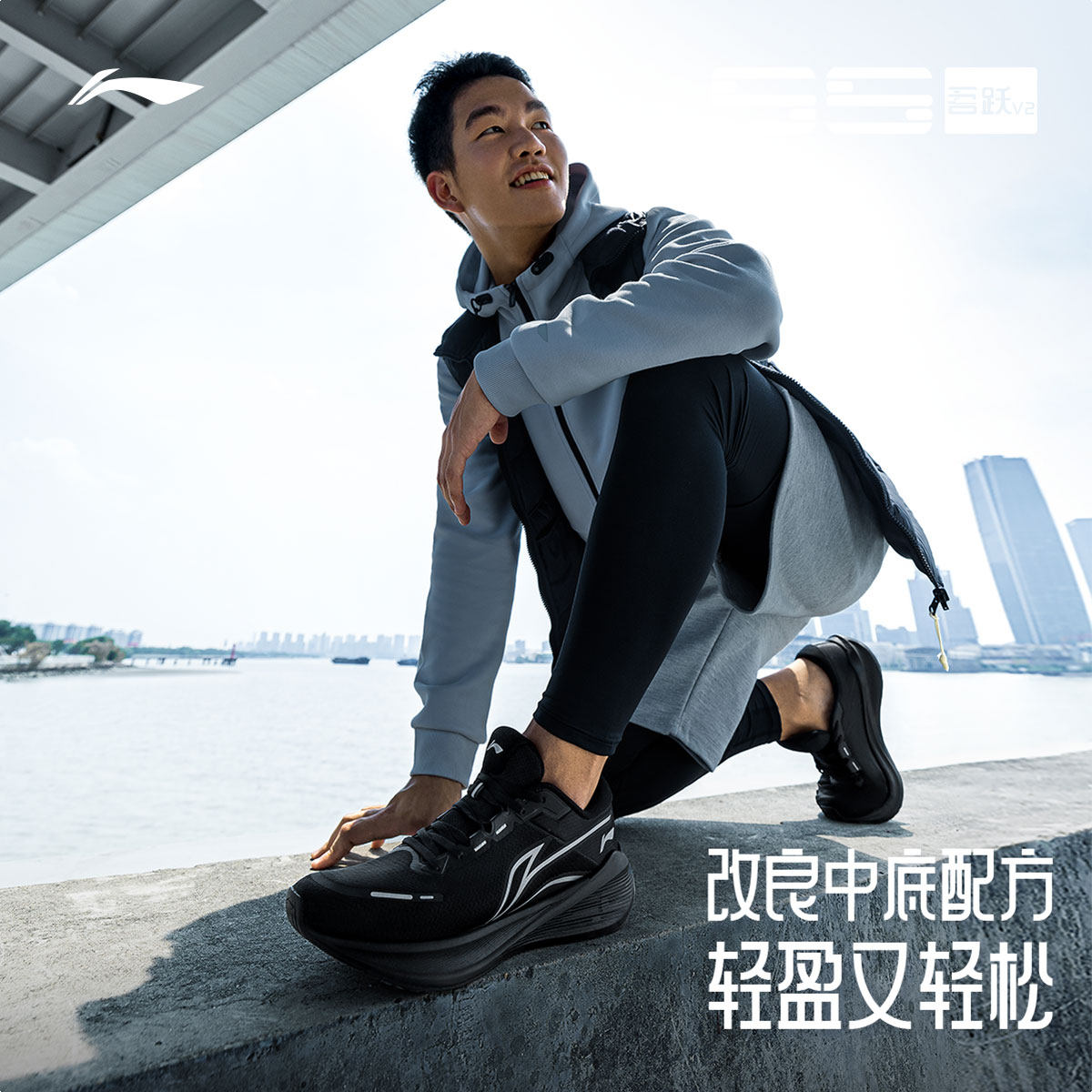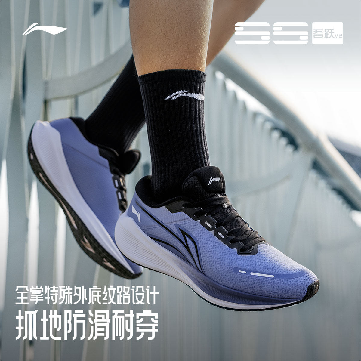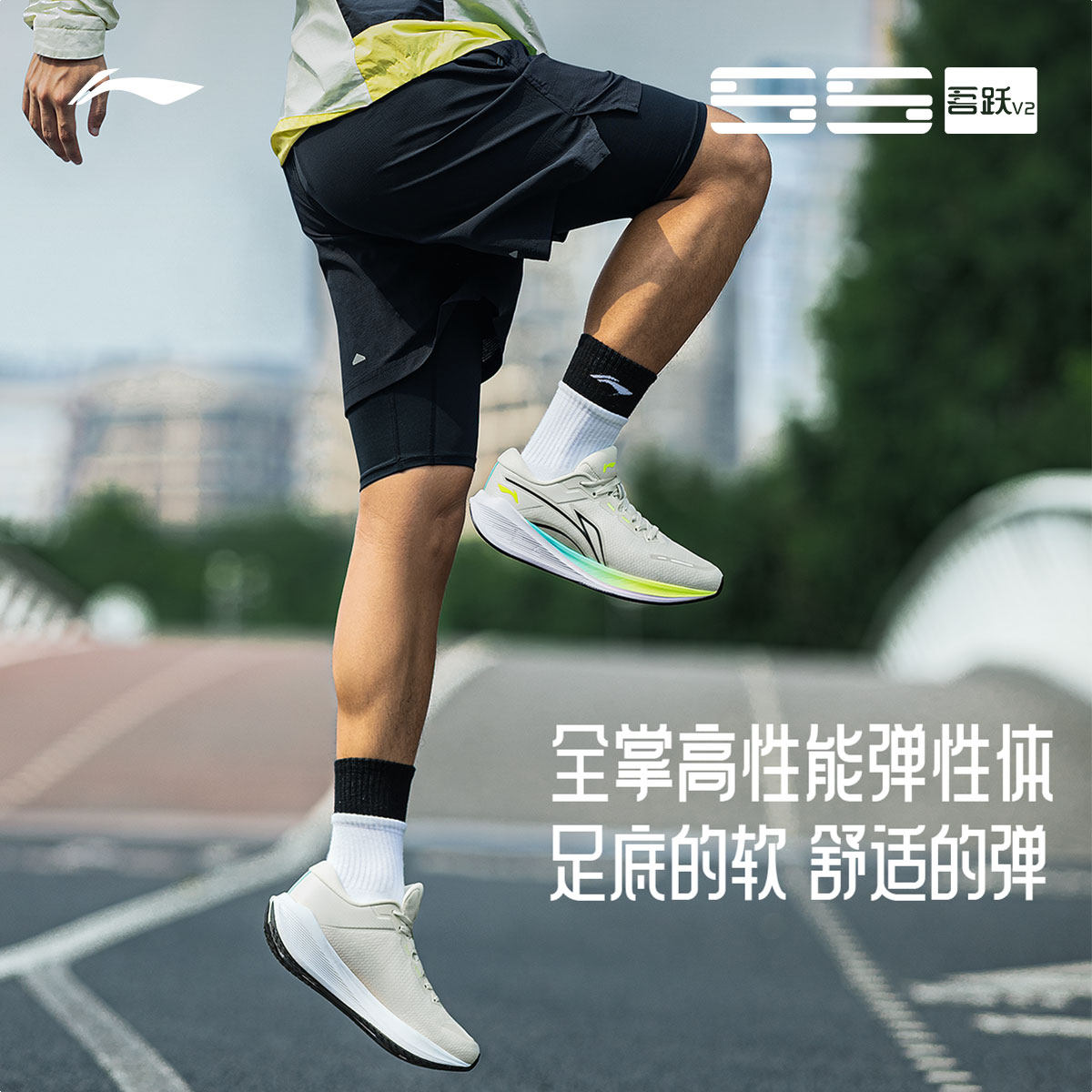 李宁吾跃 V2 | 跑步鞋男女款厚底轻便减震回弹跑鞋黑色休闲运动鞋