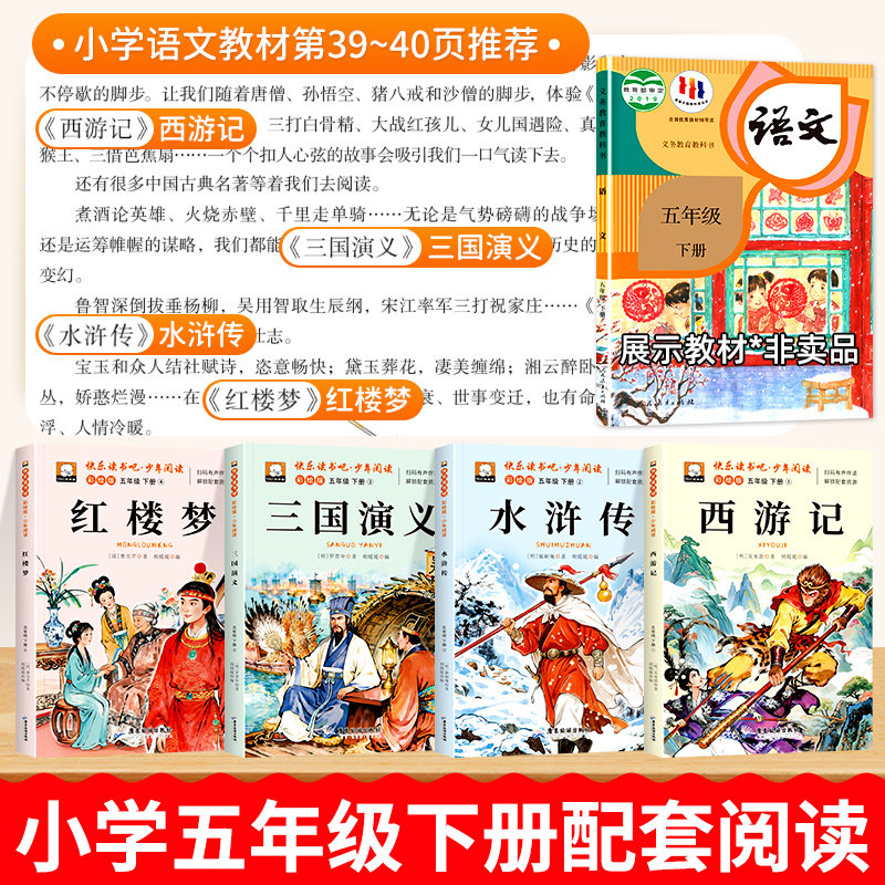 2025四大名著快乐读书吧五年级下册必读课外书全4册水浒传红楼梦三国演义西游记小学生必读经典书目老师推荐阅读书籍同步人教课本