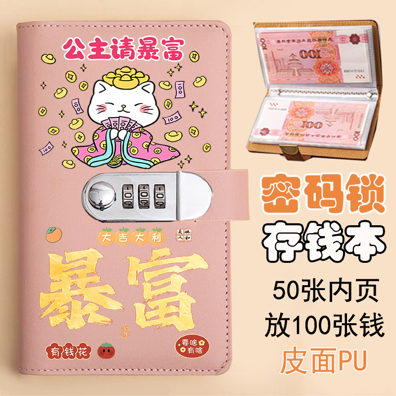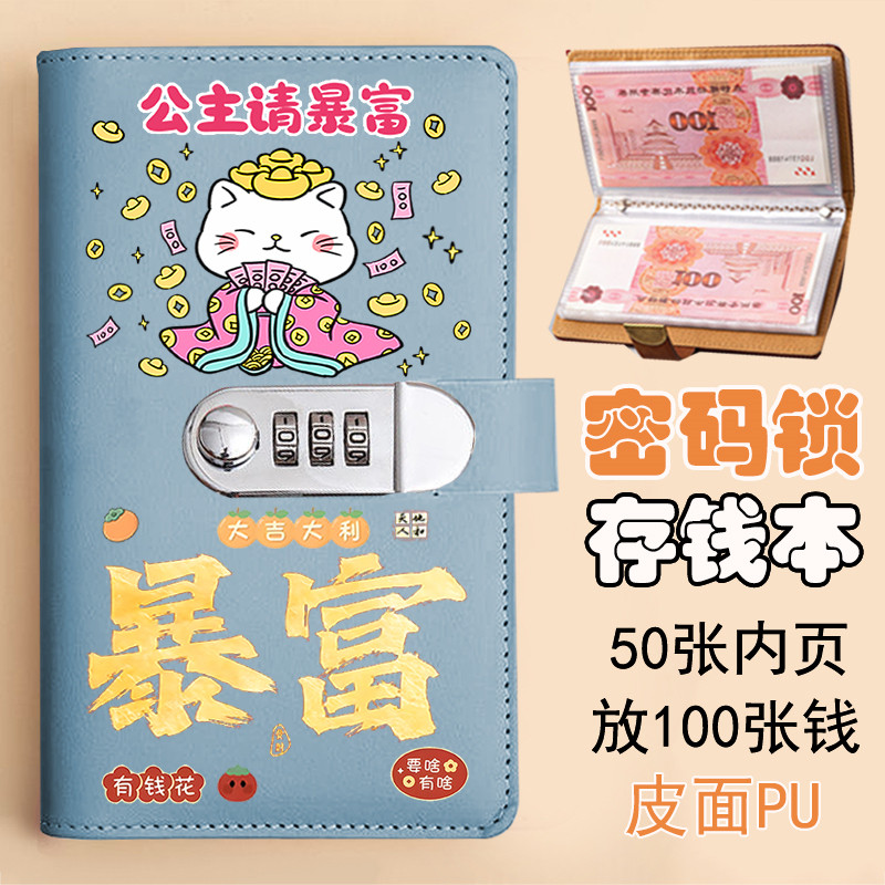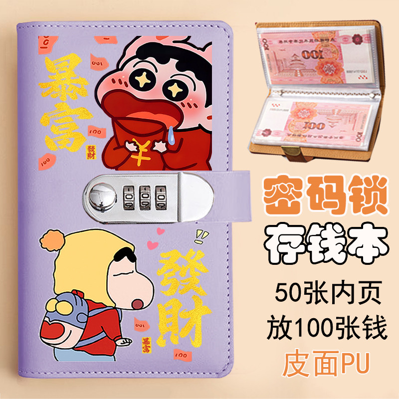 蜡笔小新存钱本学生大容量现金明细存钱袋密码锁理财本零钱收纳本