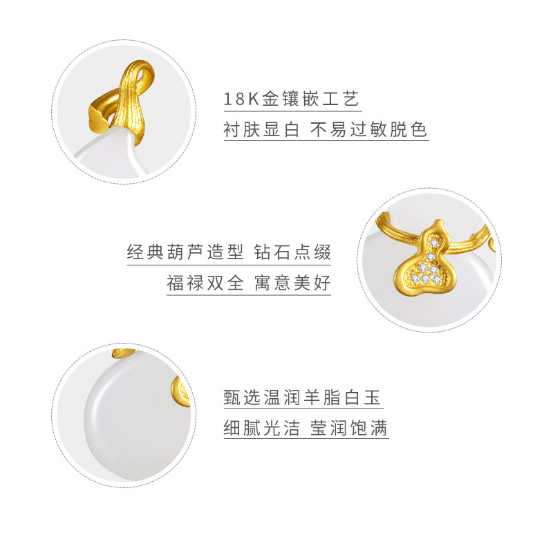 和合玉器和田玉羊脂白玉18k黄金镶玉葫芦吊坠玉坠子挂件女士节日