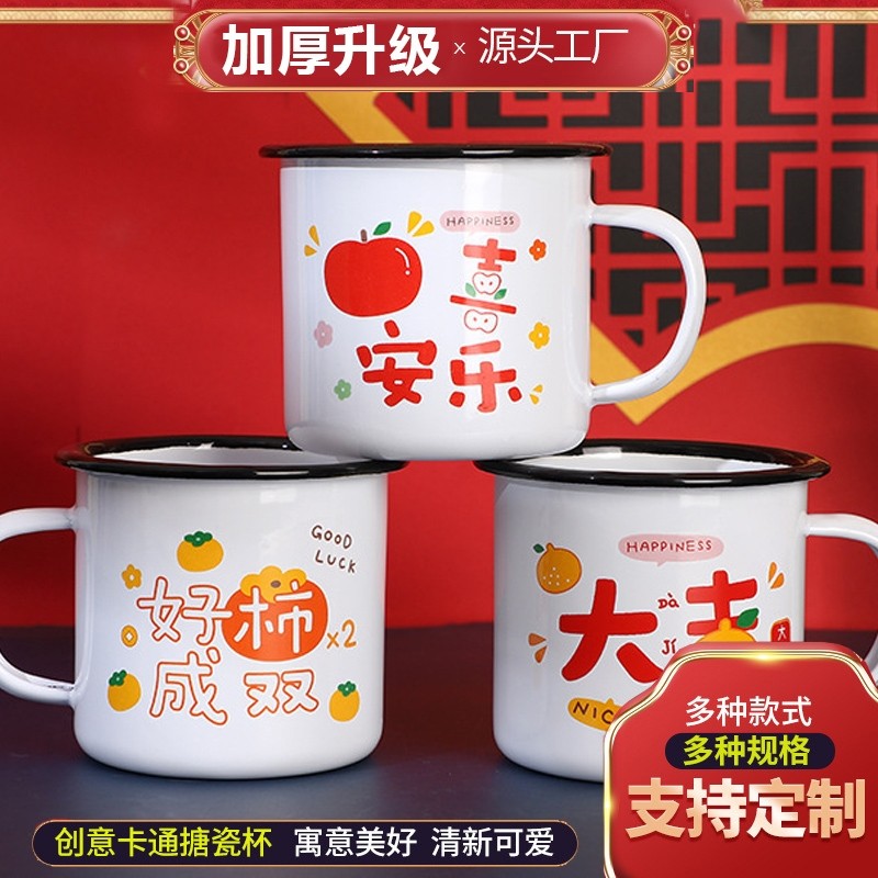 网红可爱搪瓷杯加厚款摔不烂铁马克杯喝水杯子卡通创意儿童漱口杯