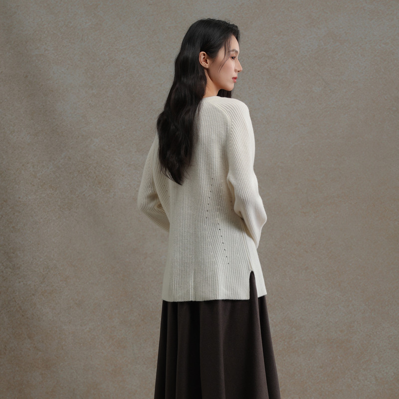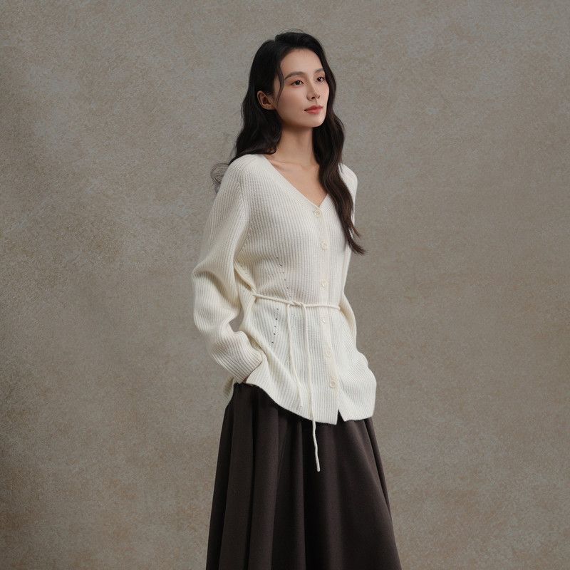 AIRIQI商场同款25冬新款镂空设计V领系带全羊毛针织开衫AH54KS300