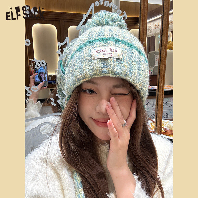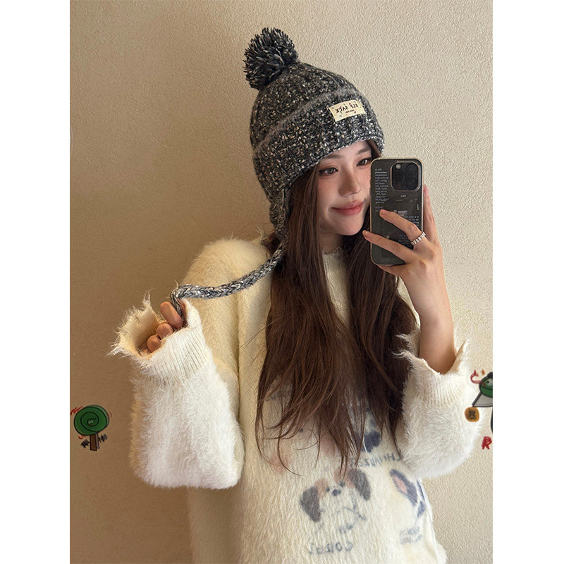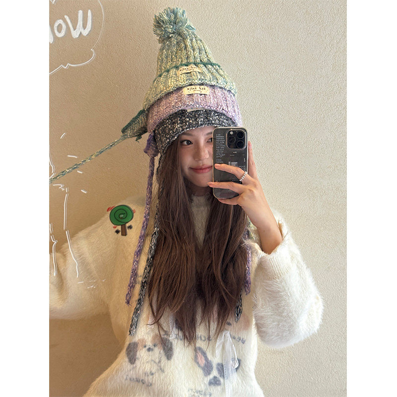 妖精的口袋香芋紫色毛球毛线帽子女2025年冬季新款保暖护耳软糯帽
