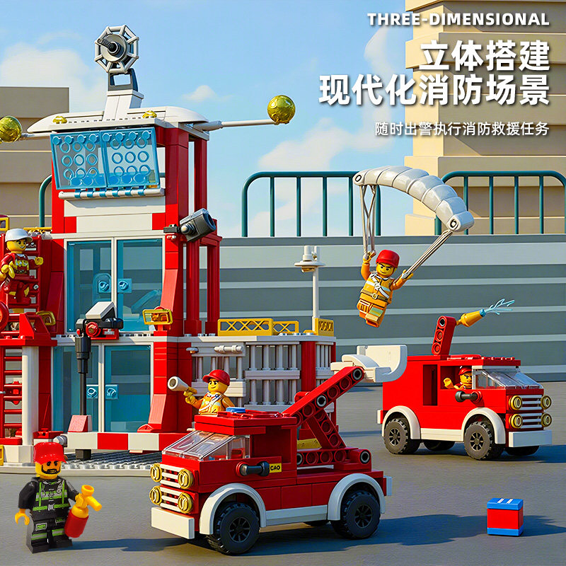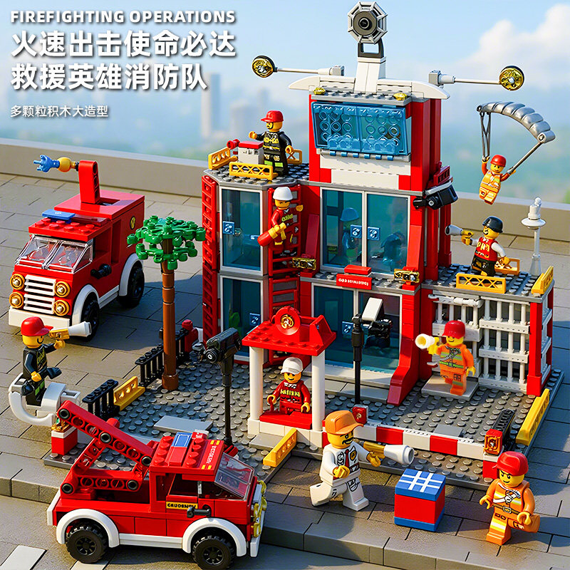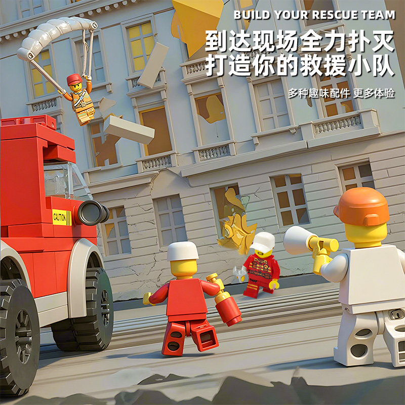 消防总局系列积木洒水云梯车消防车拼装玩具男孩女孩生日儿童礼物