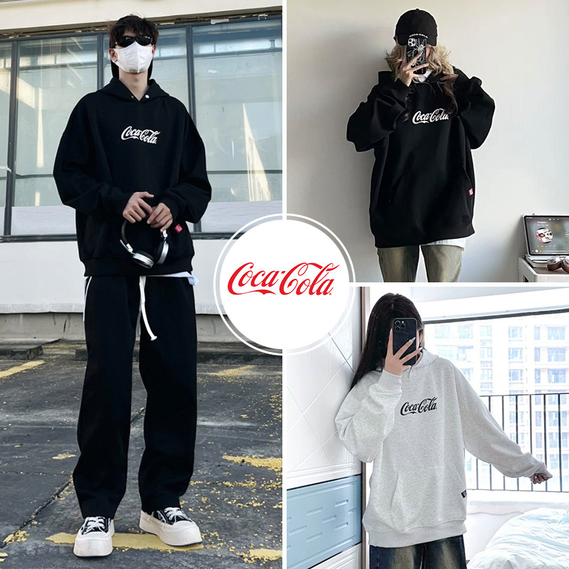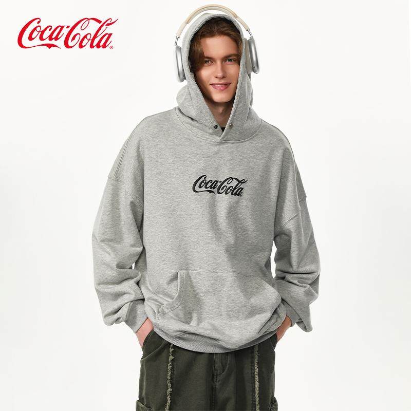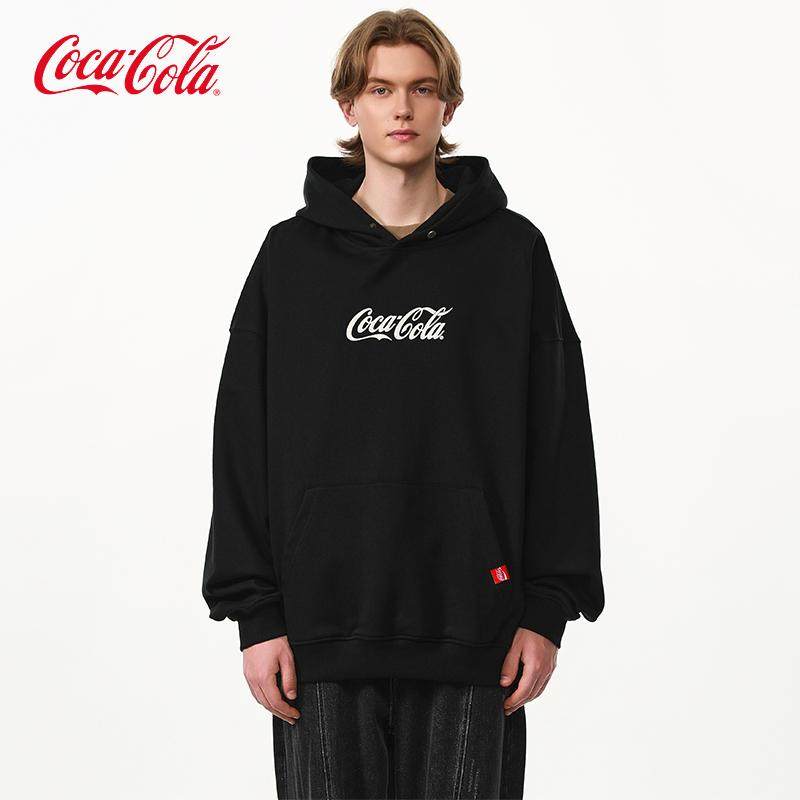 Coca-Cola/可口可乐连帽卫衣男女秋冬款字母印花加绒加厚纯色上衣