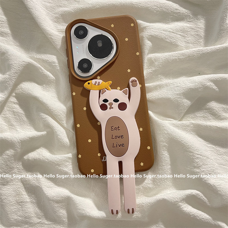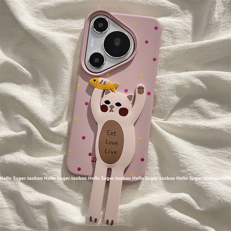 日韩波点可爱立体猫咪支架适用华为mate70pro+手机壳mate60pro软胶防摔pura70pro保护套mate40/50pro女70u壳