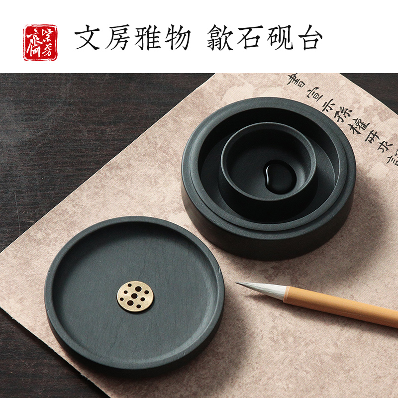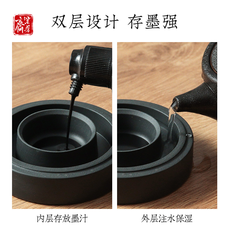 紫芳斋新款火锅砚台书法专用多功能带盖防蒸发不干墨初学者练毛笔字可磨墨研墨条学生用歙砚墨池墨汁保湿墨盒