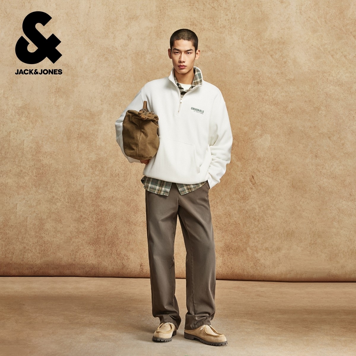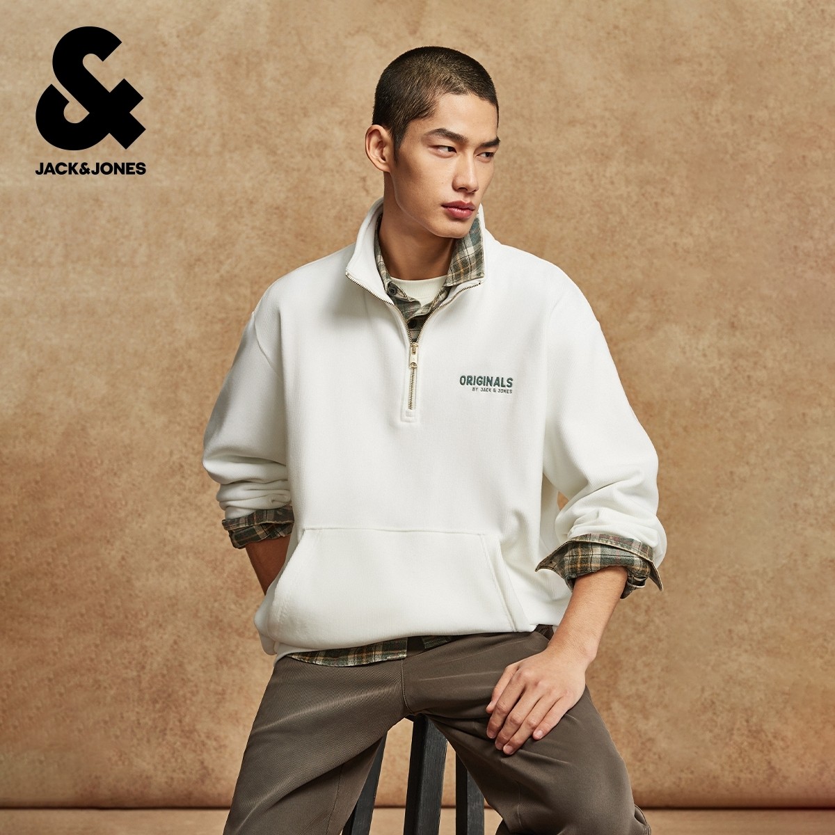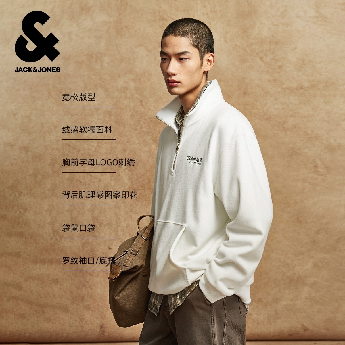 杰克琼斯男装冬季卫衣2025年新款半高领绒感面料字母刺绣上衣