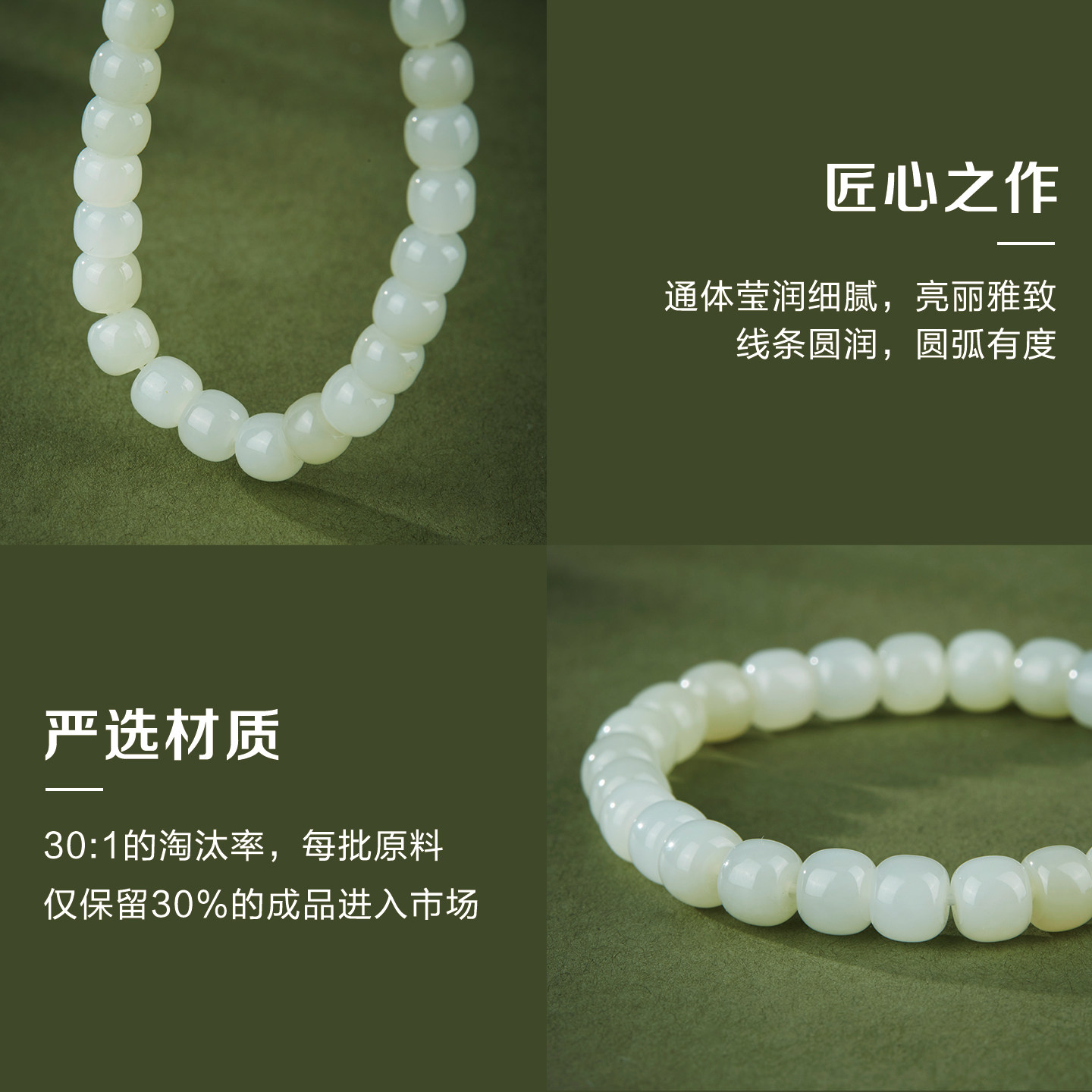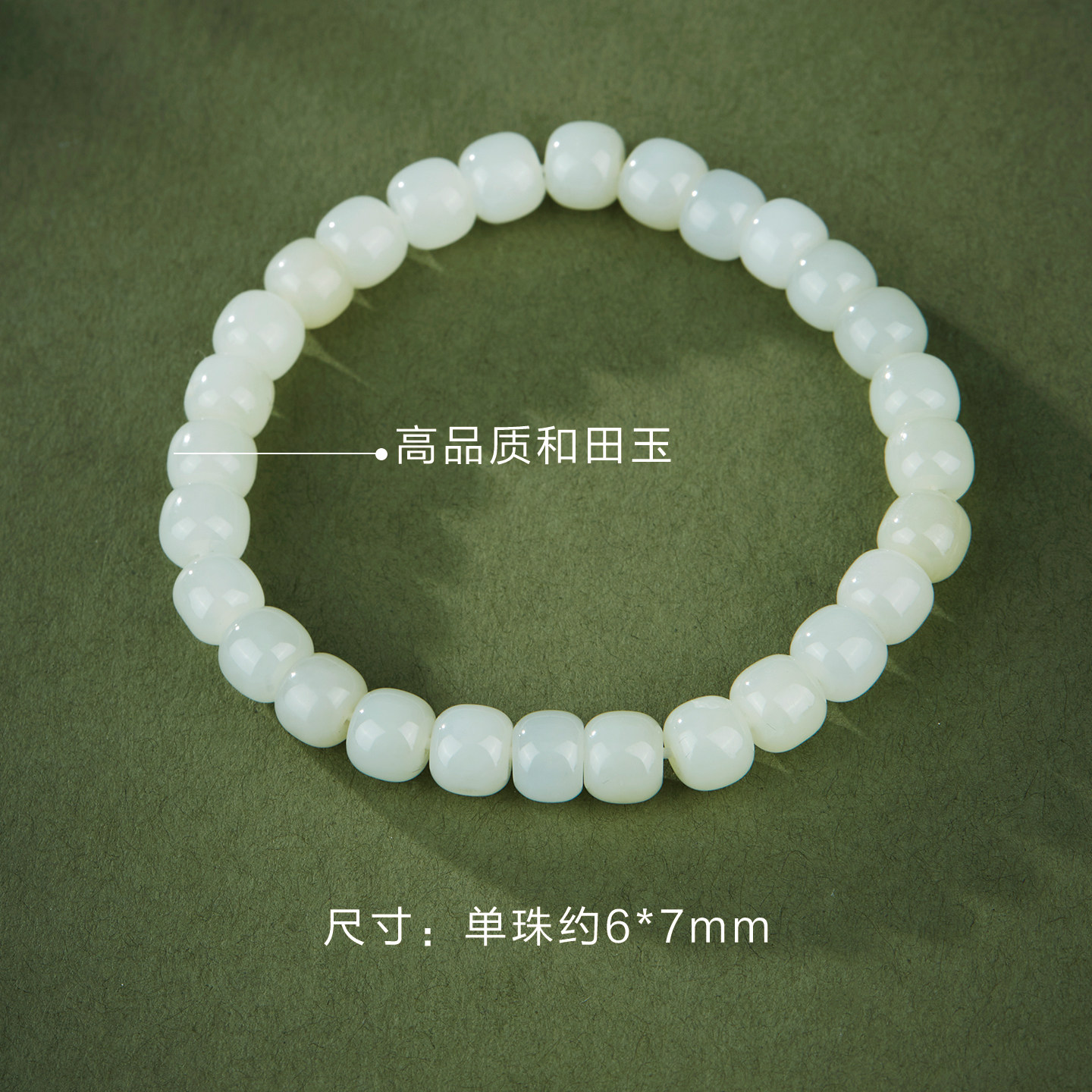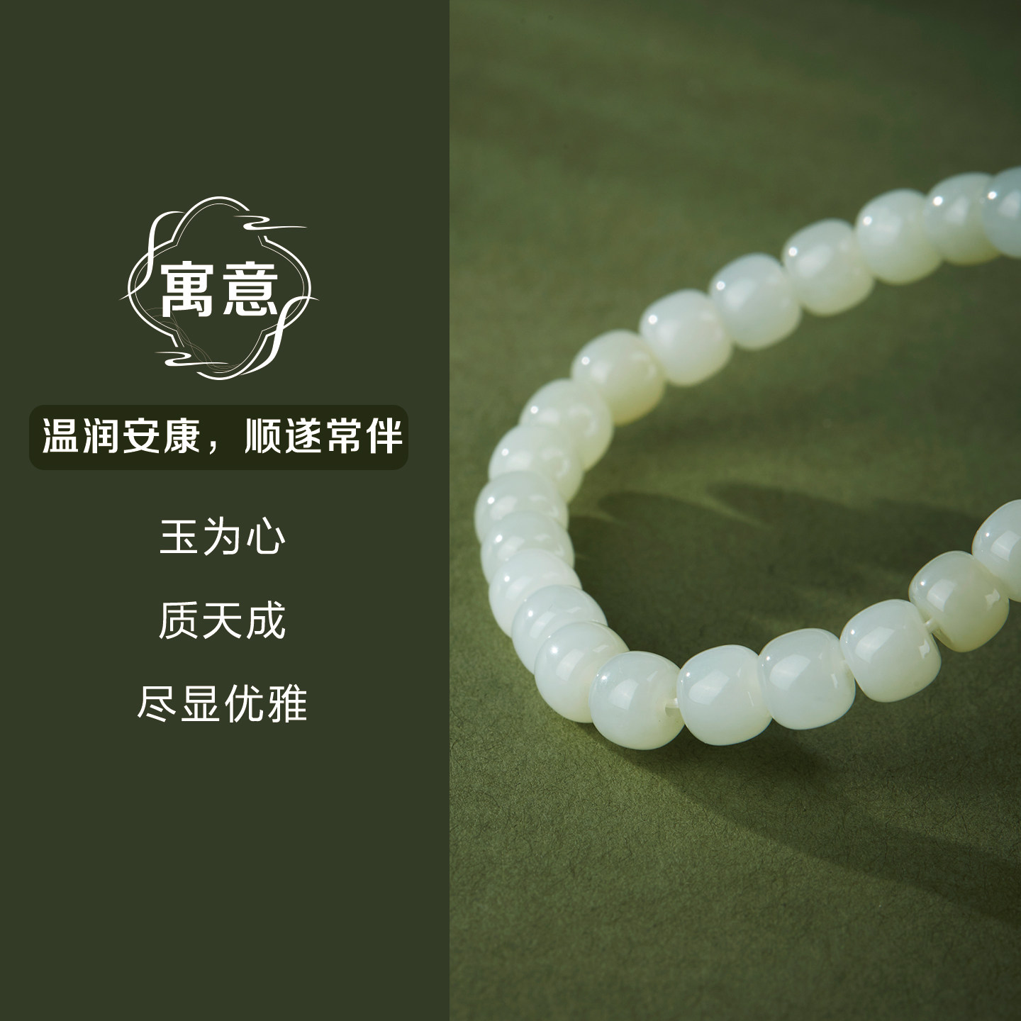 七彩云南天然和田玉手串青白玉老型珠手链素圈新国风情人节礼物