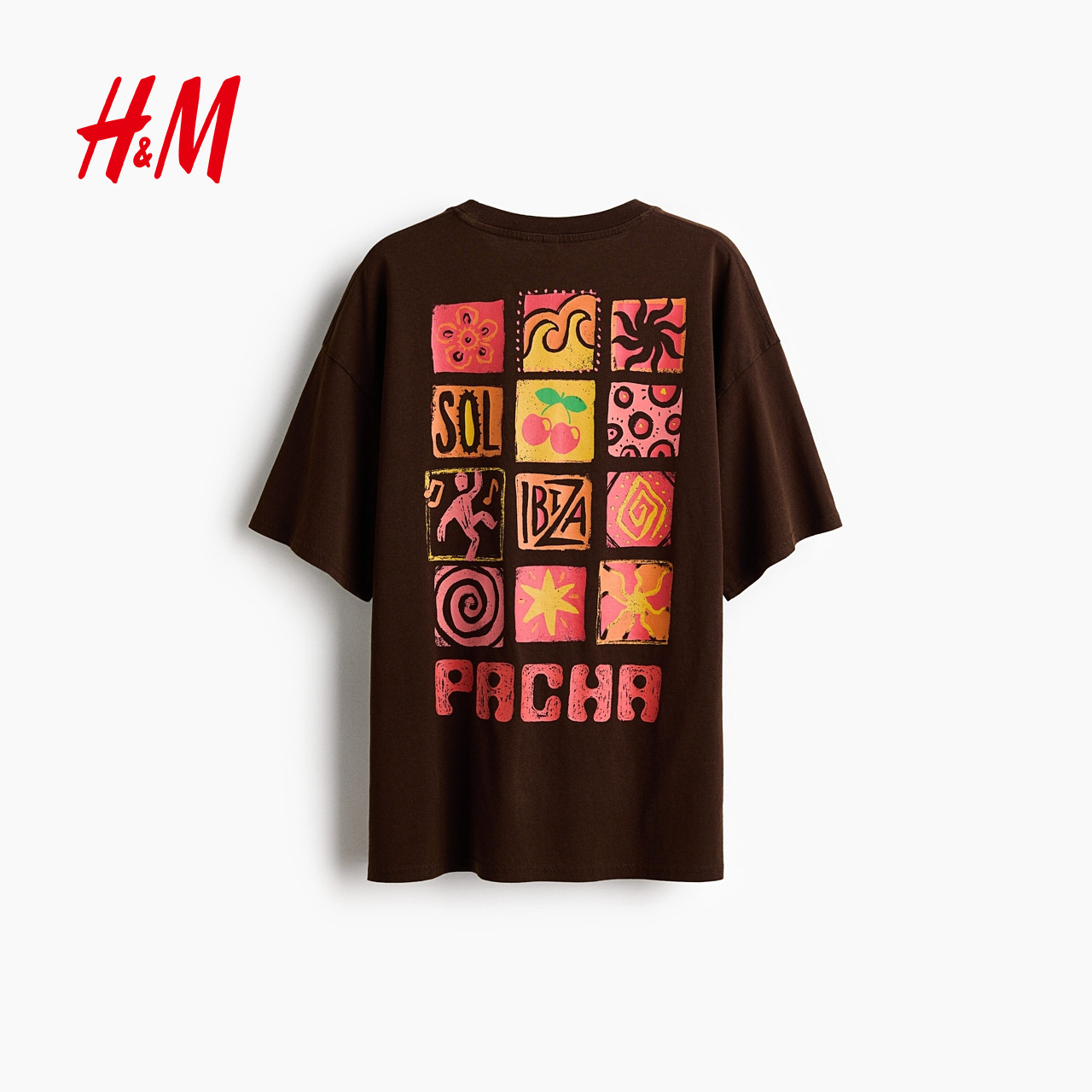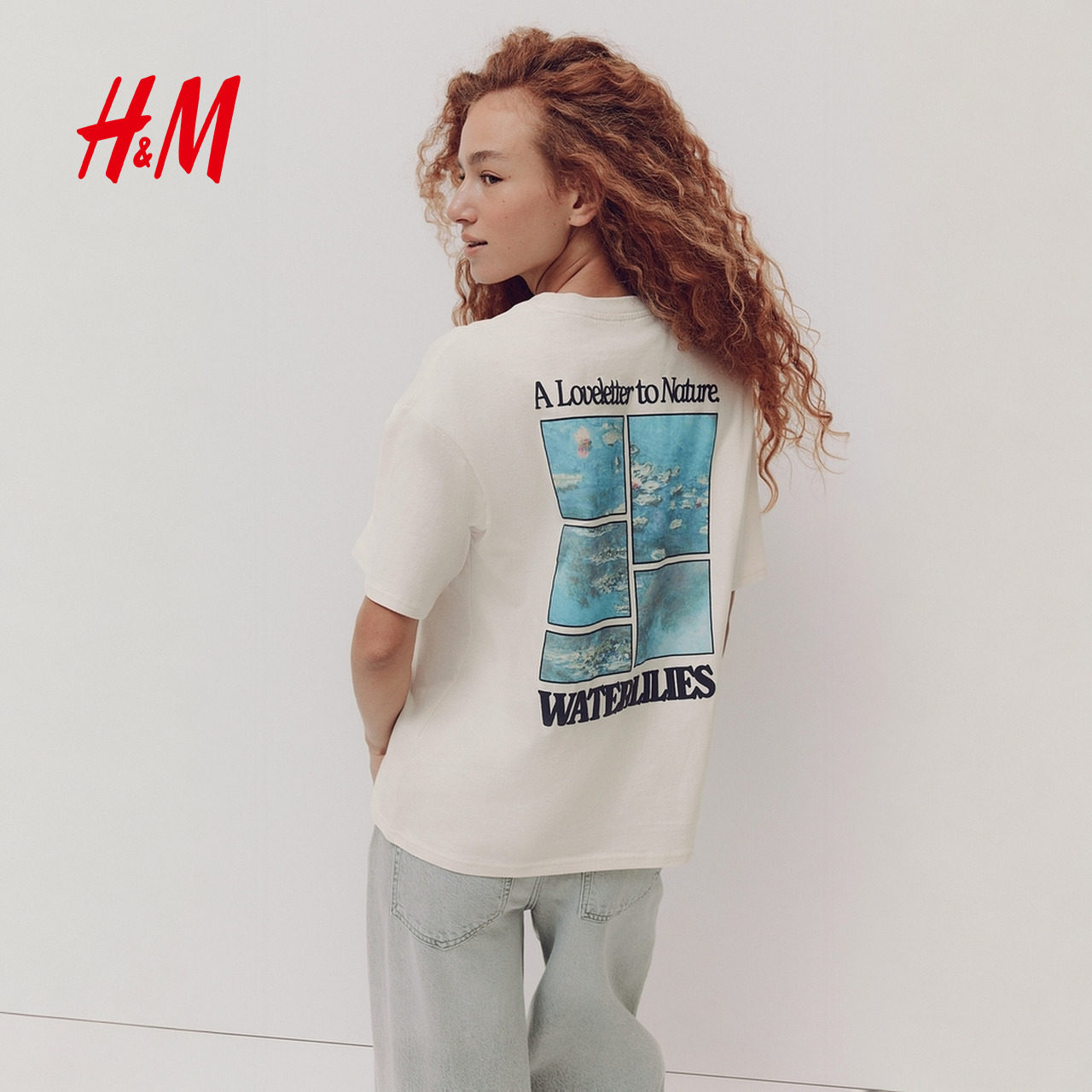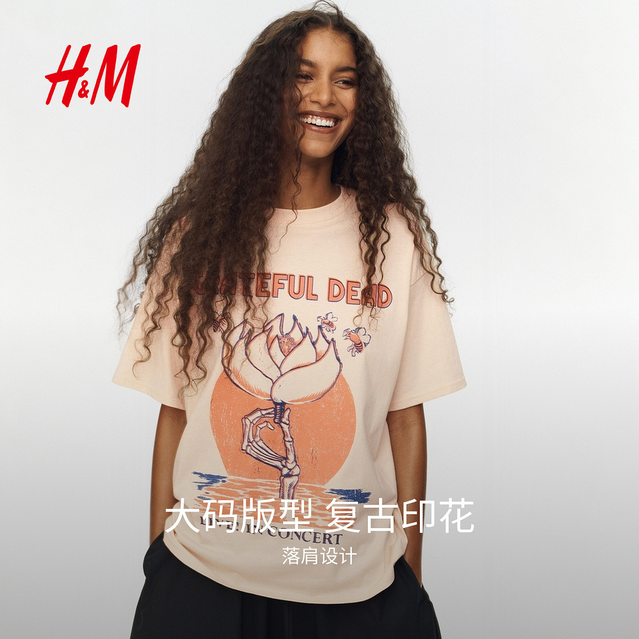 HM女装T恤2026春季新款圆领印花图案大廓形短袖美式上衣1314589