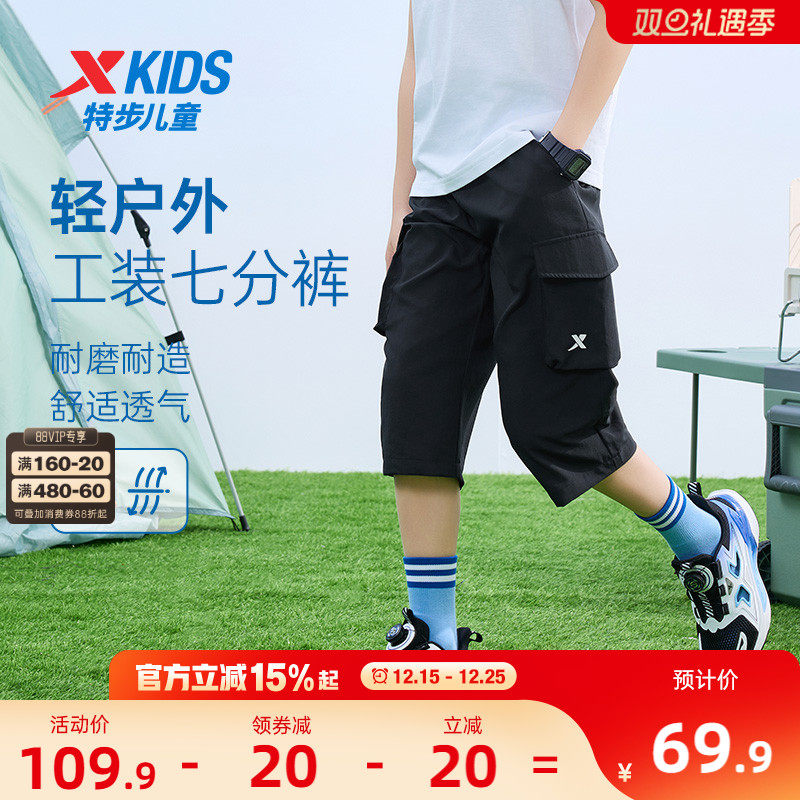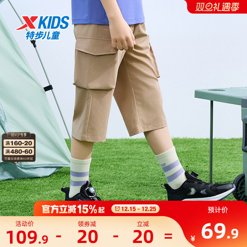 特步童装男童工装裤儿童速干七分裤2025夏季新款中大童夏装短裤子