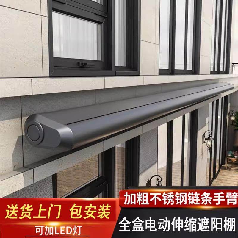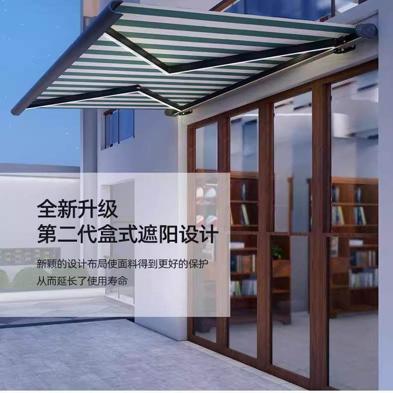 户外折叠伸缩式全盒电动遮阳棚雨蓬阳露台带灯篷庭院家用别墅雨棚