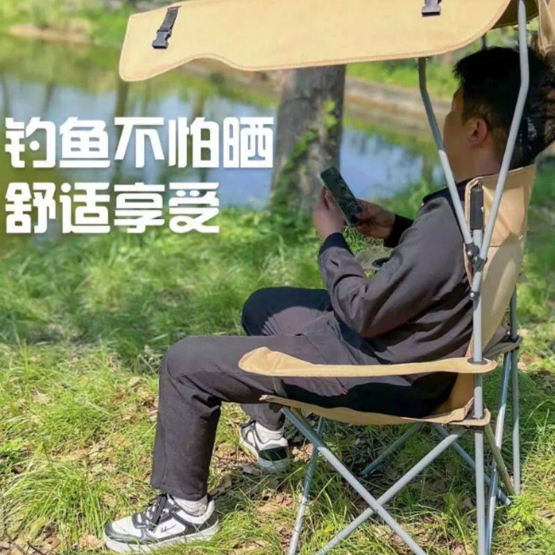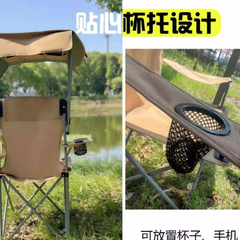 亚马逊折叠椅遮阳蓬沙滩椅便携遮阳棚防晒扶手椅烧烤钓鱼休闲椅
