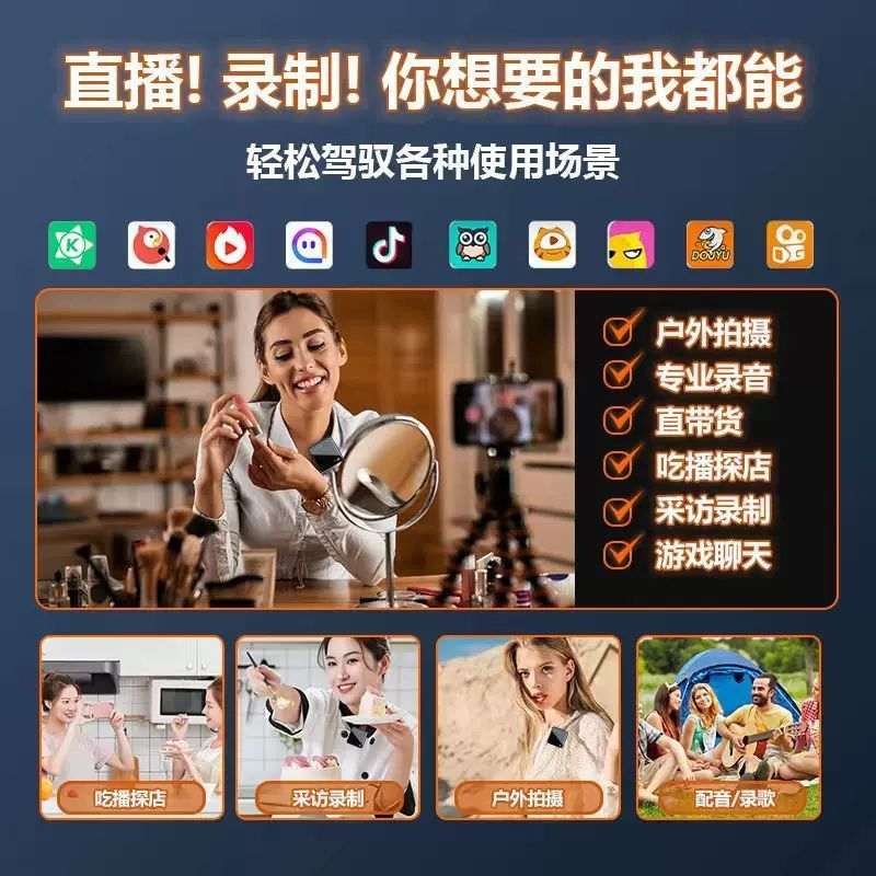 R8方形领夹黑色智能货式领带收音器麦克风麦直播降噪无线夹降噪