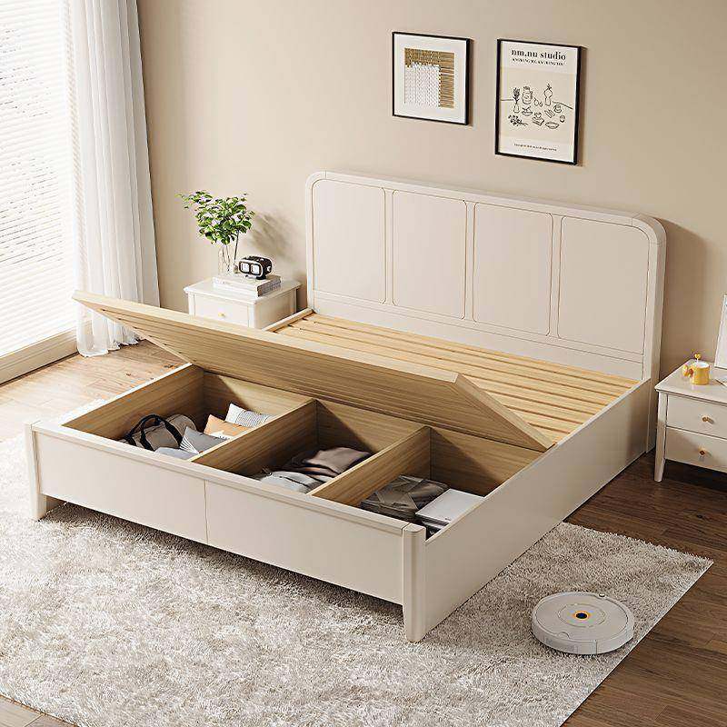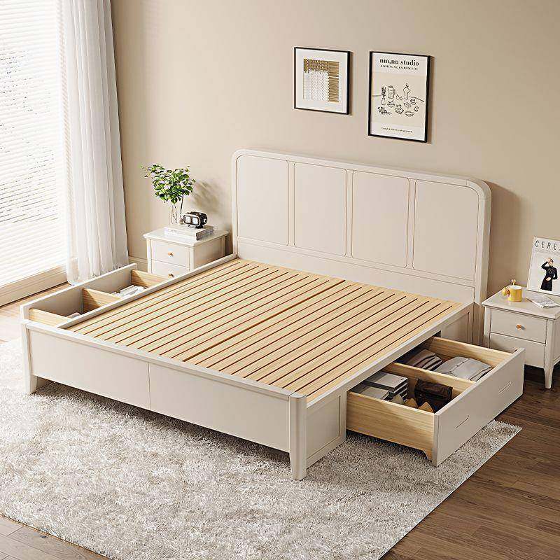奶油风实木床主卧1.5双人床现代简约1.8小户型经济出租储物床白色
