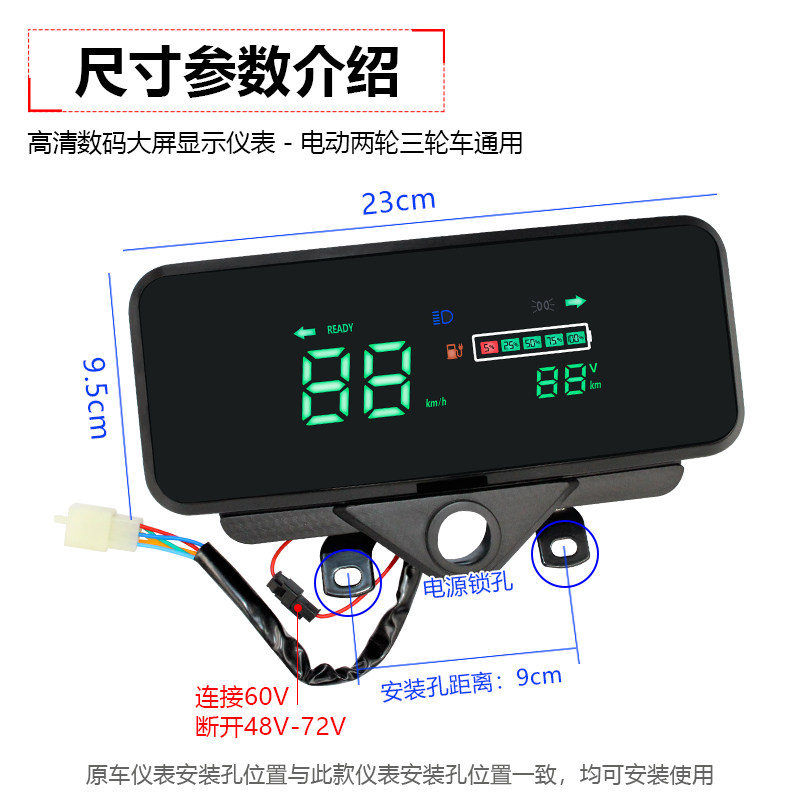 电动三轮车仪表盘48v60v72V通用电动车液晶仪表总成电量表里程表