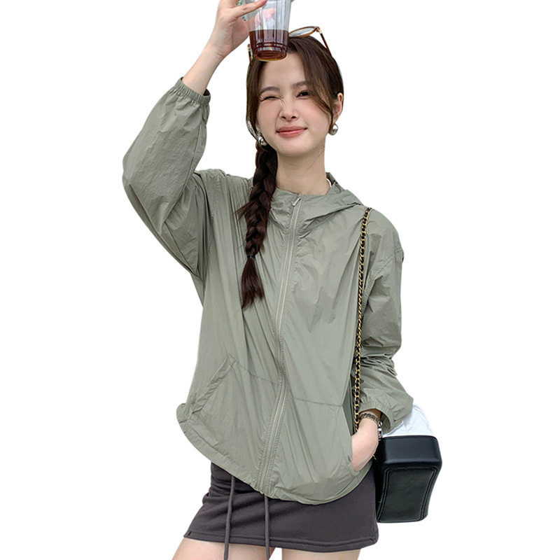 NOME(服饰)夏季宽松女士连帽长袖防晒皮肤衣轻薄拉链防水洗开衫