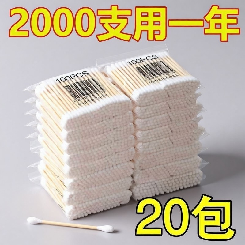 2000支棉签棉签棒掏耳化妆用木棒棉花棒挖耳朵双头一次性清洁棉棒