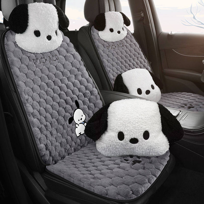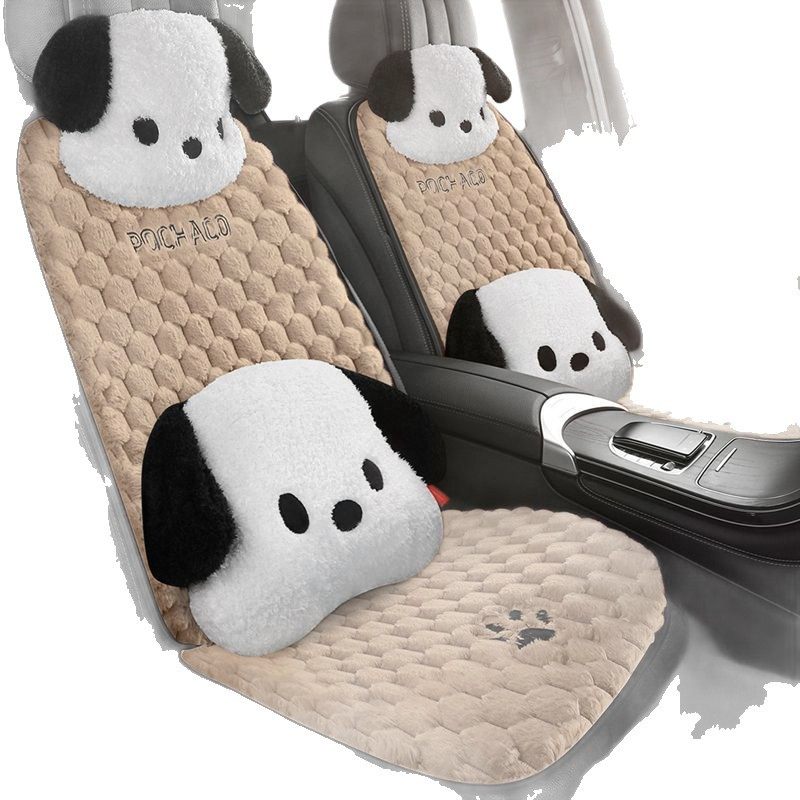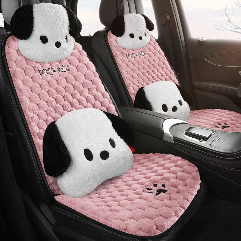 汽车坐垫冬季毛绒座垫可爱卡通单片女神保暖三件套后排通用座椅