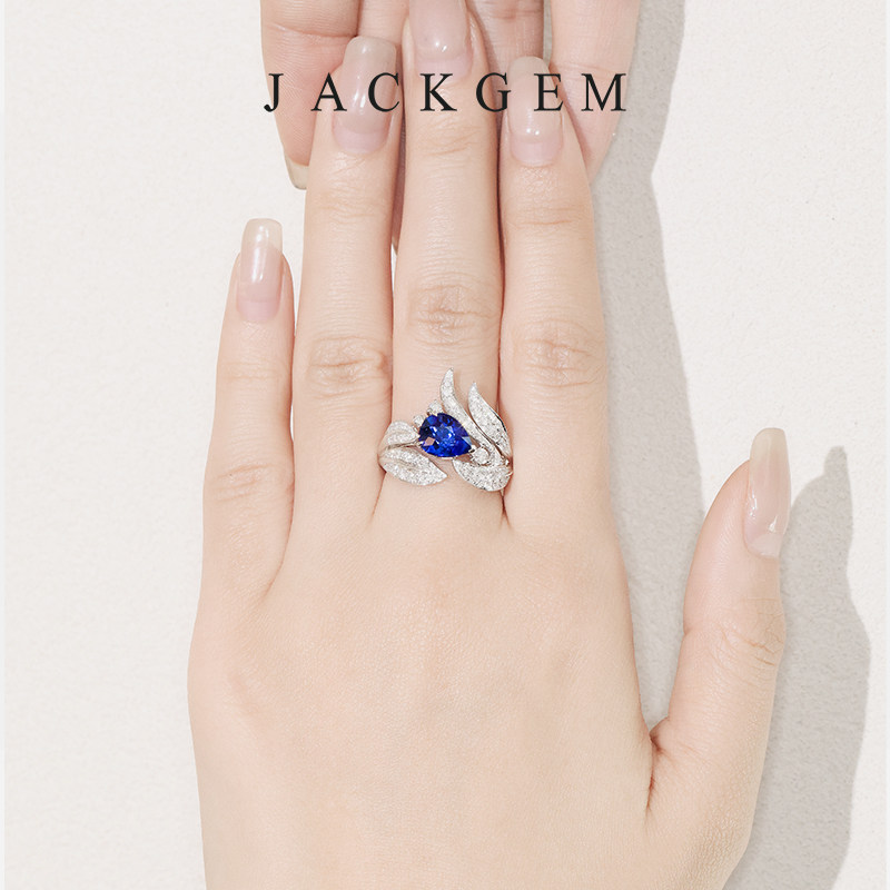 【原创月下影】蓝宝石戒指18k金钻戒钻石戒指彩宝戒指珠宝首饰 S1