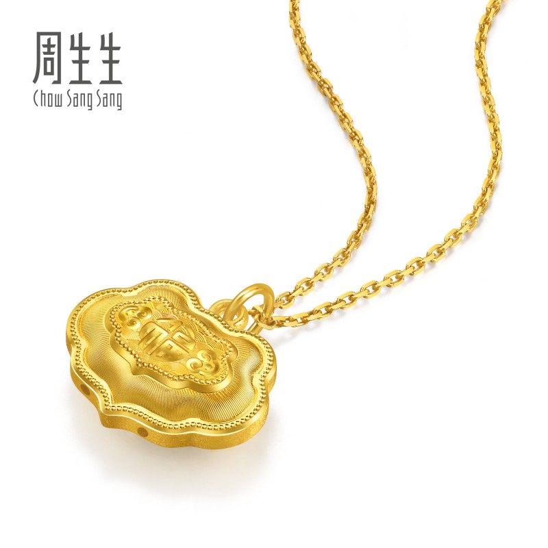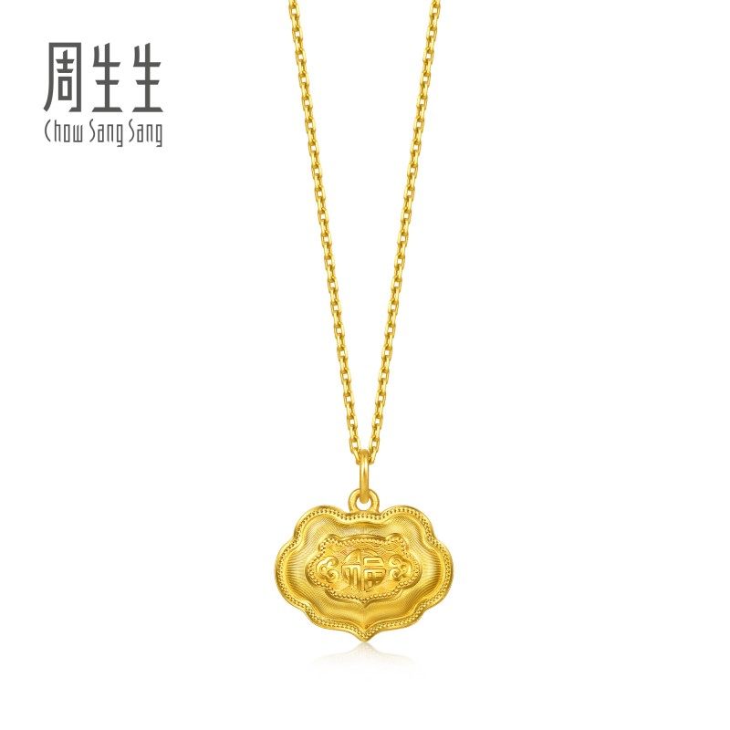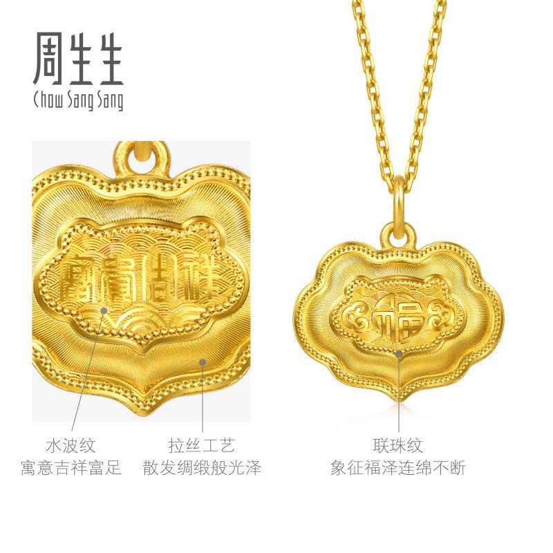 周生生足金生生有礼富贵吉祥金锁黄金吊坠(小版)96167P计价