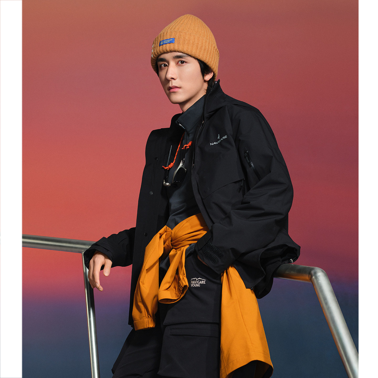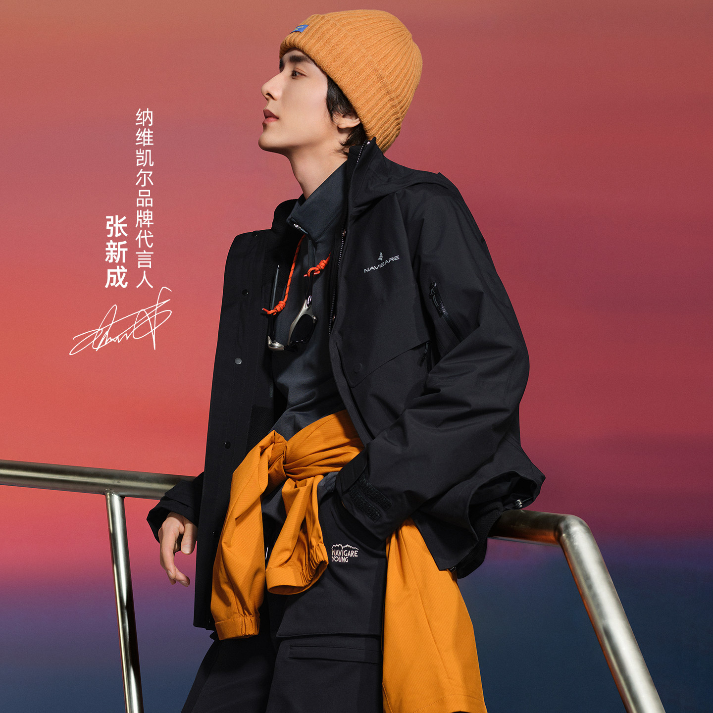 [张新成同款]Navigare小帆船两件套连帽夹克男士秋冬黑色三防外套