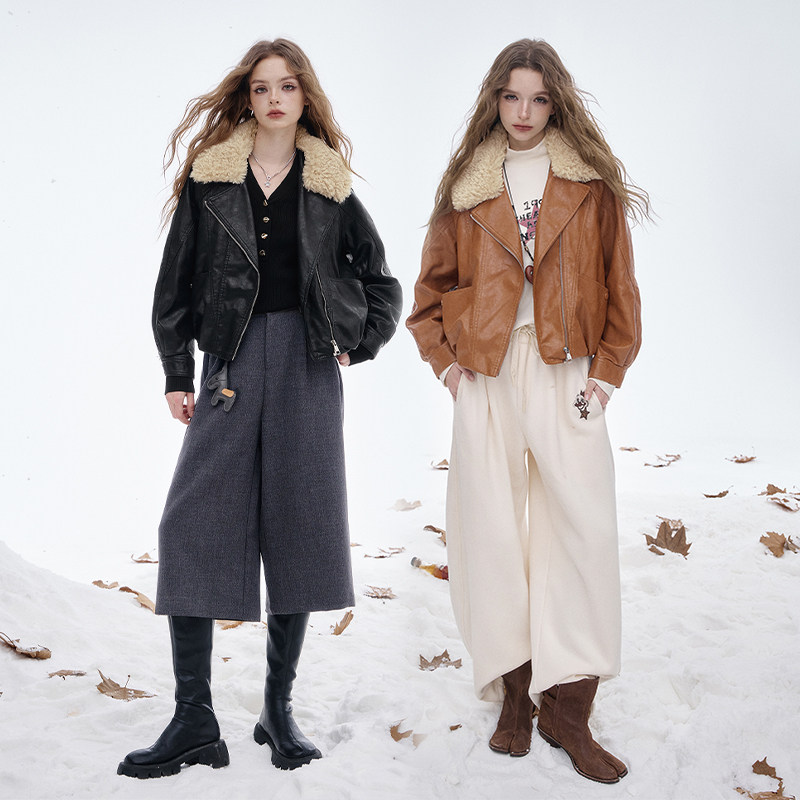 【折扣季】COCOBELLA复古爆裂纹PU环保皮衣外套机车夹克PU3006-2