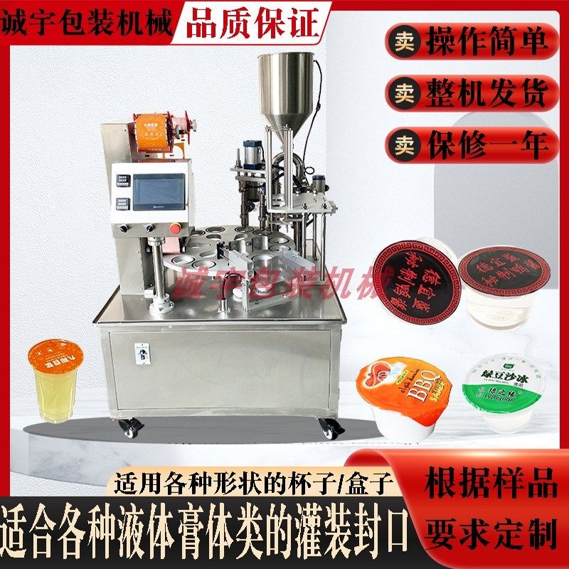 全自动杯装豆浆酱料酸奶灌装封口机果冻绿豆沙果汁连续灌装封杯机