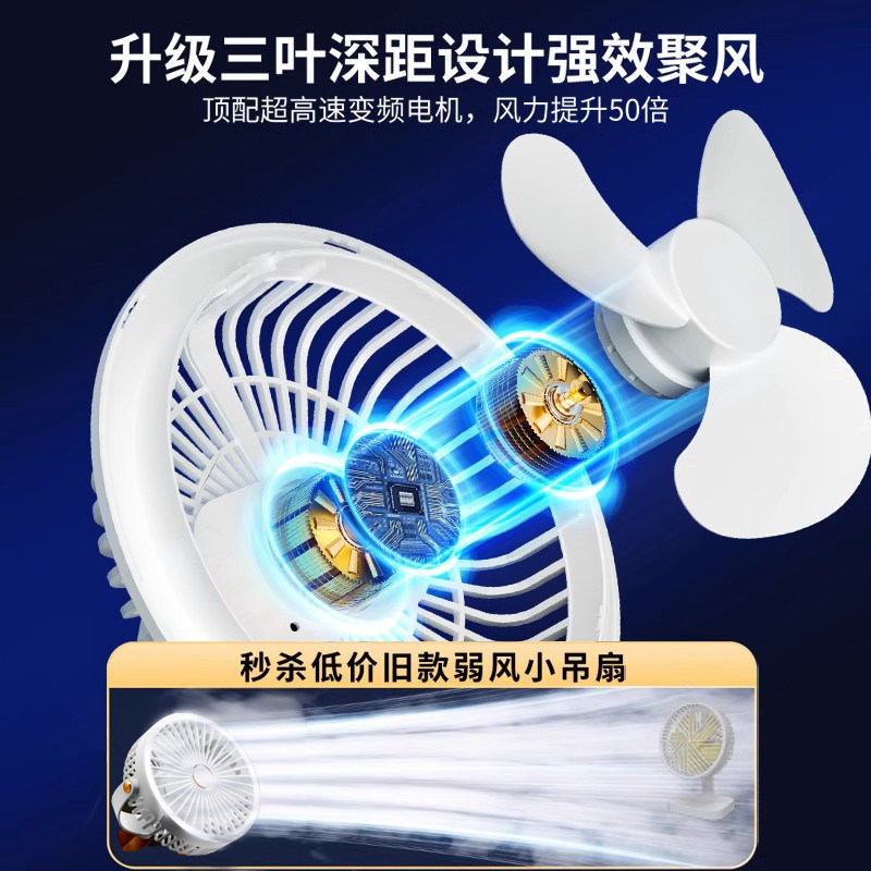 小风扇吊扇宿舍床上悬挂小型超大风力超静音蚊帐可挂家用小型学生上下铺迷你免挂钩厨房露营帐篷便式充电风扇