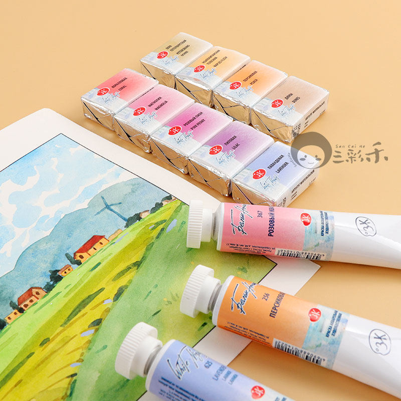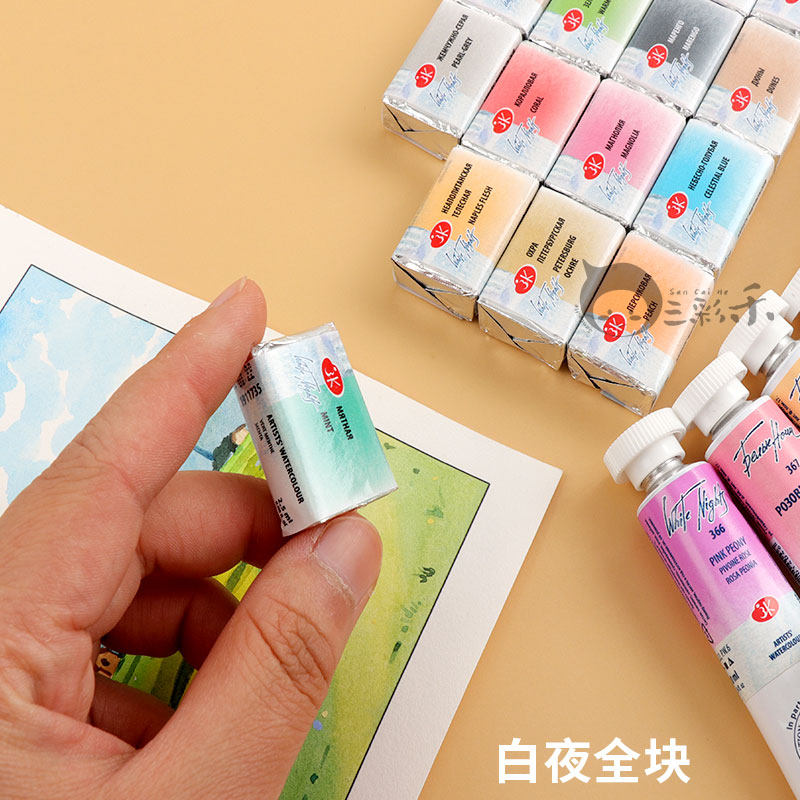 俄罗斯白夜马卡龙色糖果色不透明半透明水彩颜料固体管状清新水彩