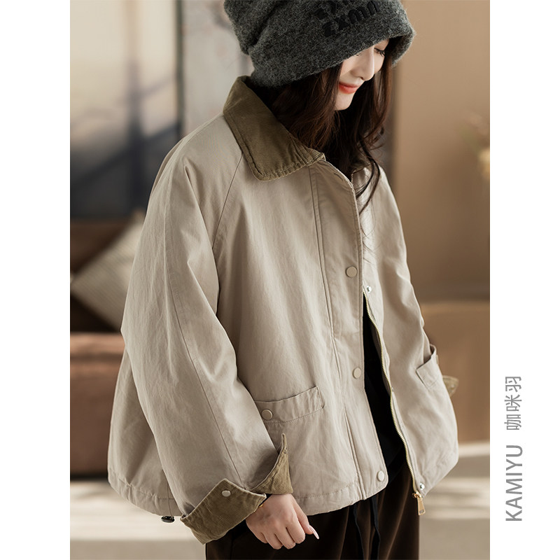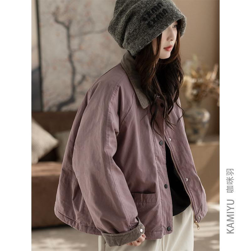 咖咪羽外套女秋冬新款女士全棉纯色百搭复古文艺休闲流行女装上衣
