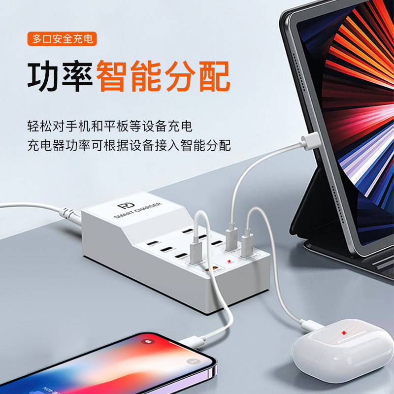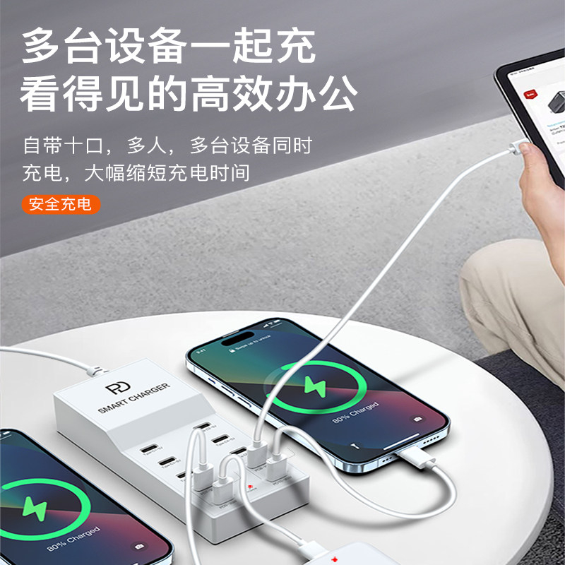 适用小米USB多口充电器多孔PD智能插头72W快充10口桌面充电站大功率手机充电桩插座工作室苹果安卓专用插排
