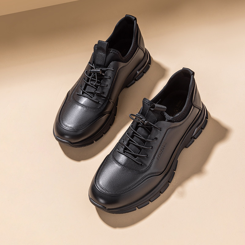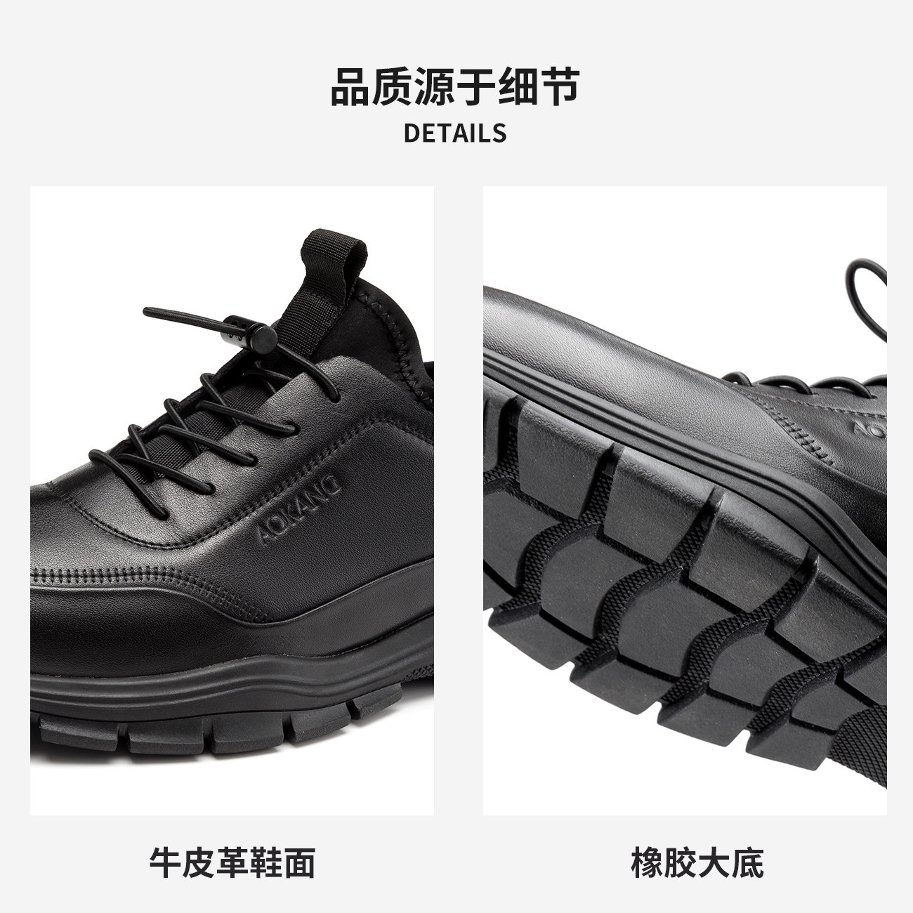 【内增高】Aokang奥康秋季新款时尚休闲皮鞋男真皮软底运动鞋