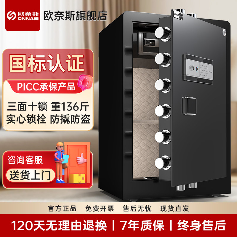 欧奈斯保险柜SSS国标认证原3C保险箱80/60cm家用小型办公全钢指纹密码智能防盗保险箱办公室酒店大容量夹万