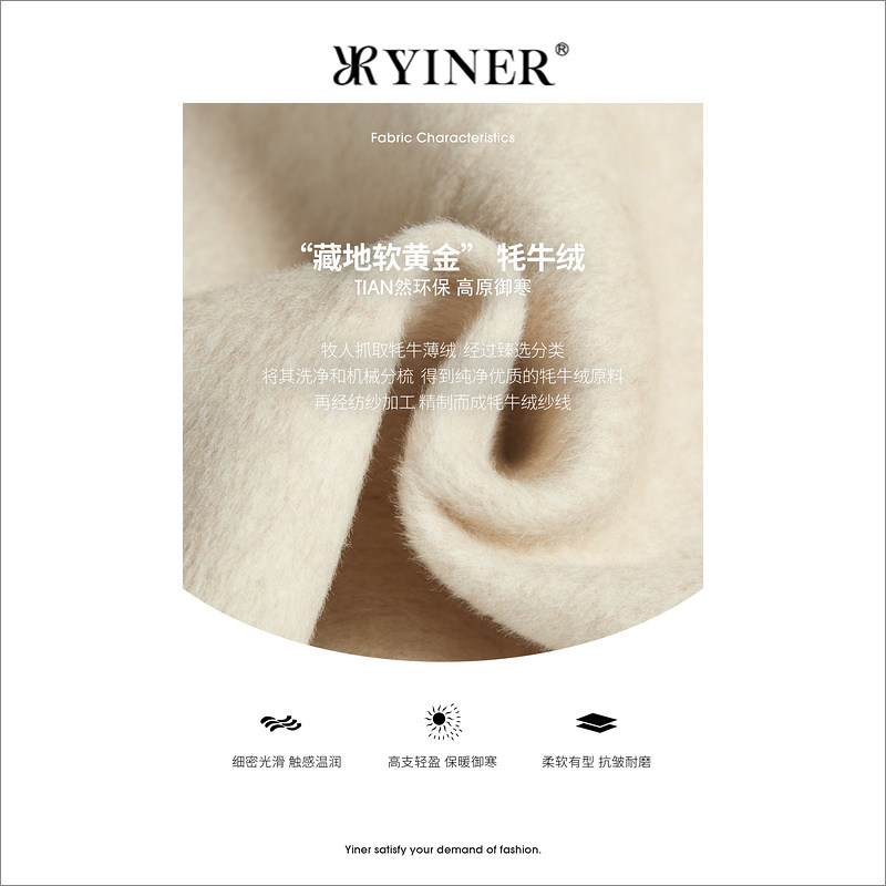 【绵羊毛+牦牛绒】YINER音儿专选女装冬季西装领外套双面呢大衣