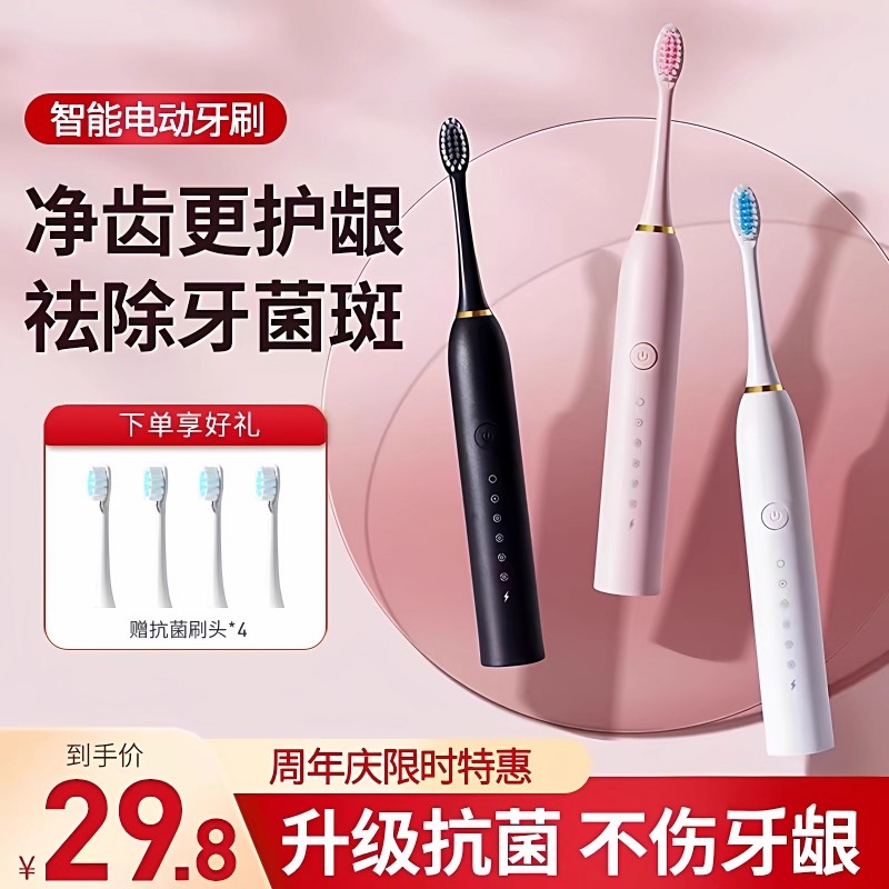电动牙刷全自动成人充电式智能声波软毛防水男女学生一对情侣套装