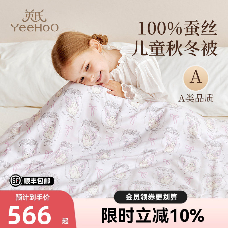 英氏儿童A类被子100%蚕丝被60支抑菌可机洗蚕丝被幼儿园厚被冬被