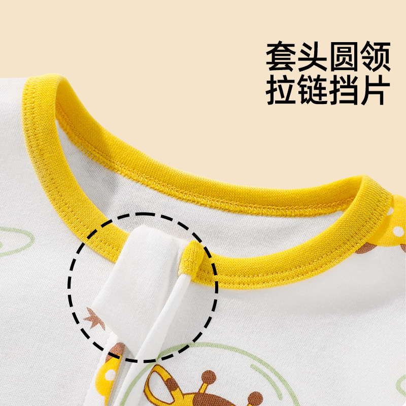 婧麒宝宝睡袋纯棉春秋连体衣睡衣男宝宝婴儿睡袋防踢被儿童家居服