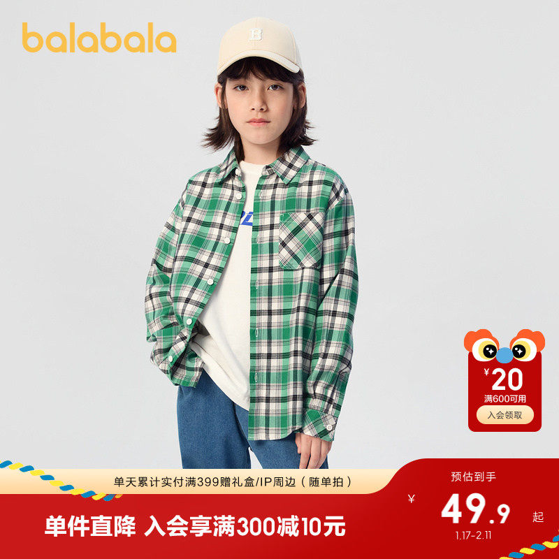 巴拉巴拉童装儿童衬衫秋装2025男童女童长袖衬衣亲子装休闲时尚潮