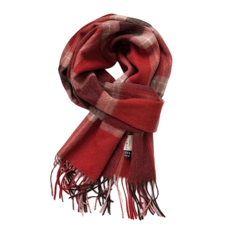 100%澳洲羊毛围巾英伦风男女情侣红色格子冬季保暖围脖格纹方格