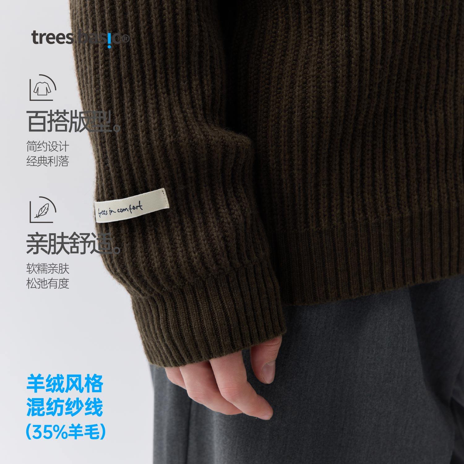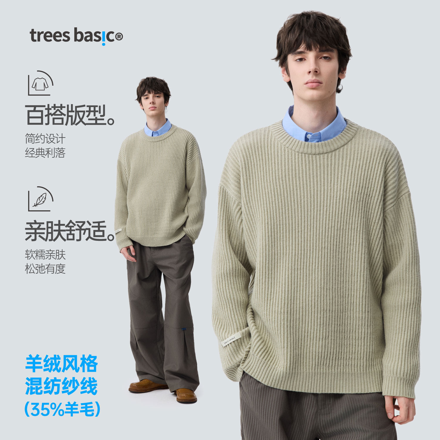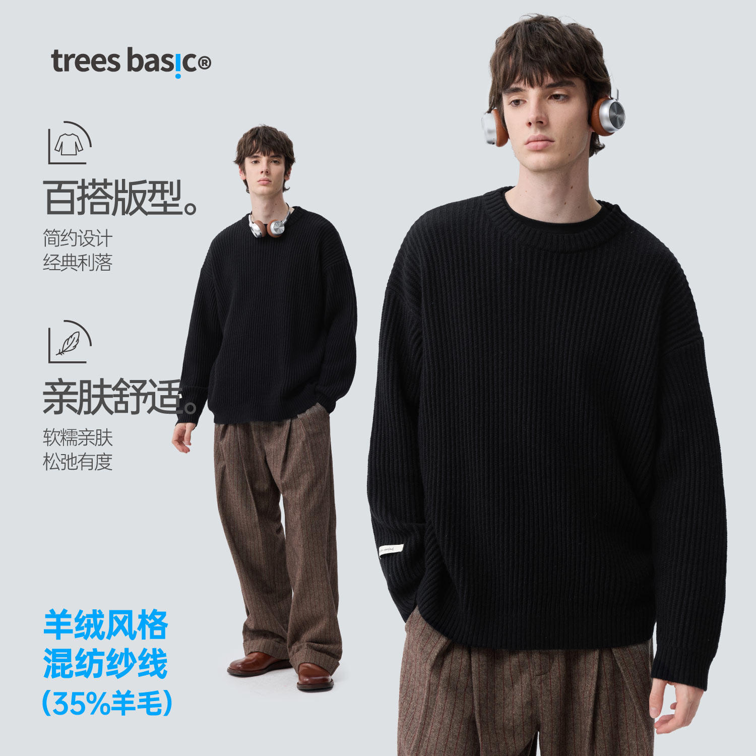 TreesBasic羊绒风格基础圆领毛衣保暖2025新款男士纯色休闲毛衣