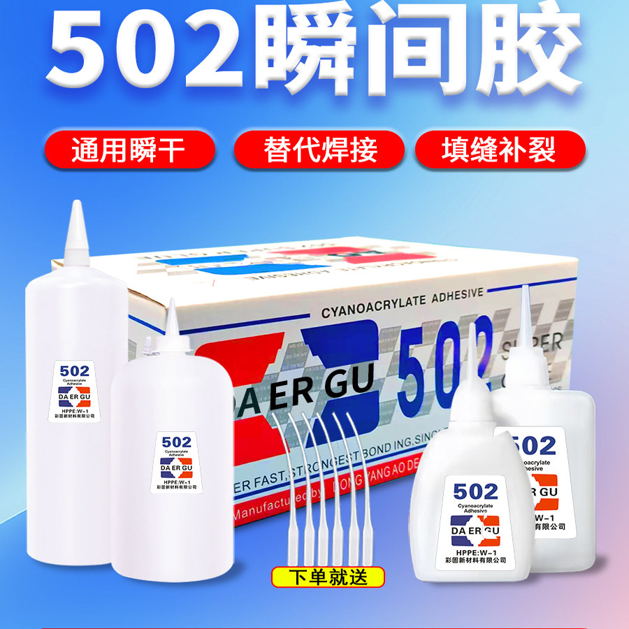 Daergoo官方正品502强力快干万能胶水瞬间超粘木工材塑料多功能玻璃家具修补鞋子广告喷绘陶瓷金属专用