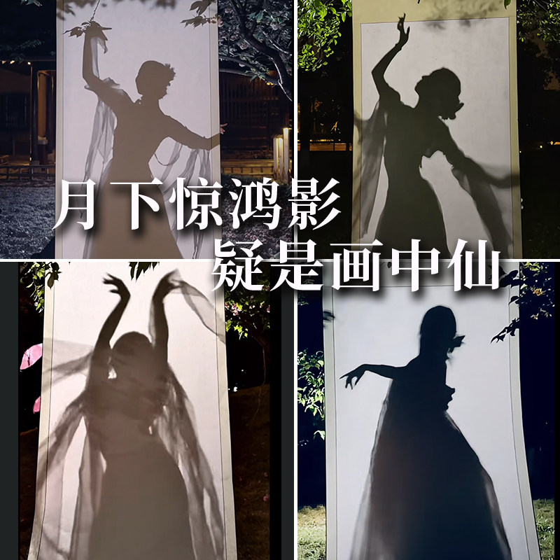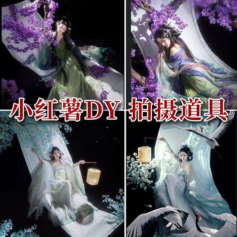 画中仙透光大卷轴汉服古风画写真空白小红书拍摄挂轴画轴女生跳舞置景道具仙气拍照约拍画框拍照装饰古典美学