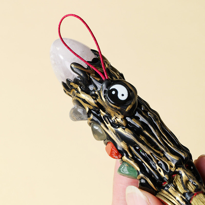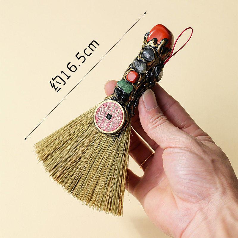 五行石摆件天然水晶矿石去霉运扫把护身符扫帚山鬼花钱