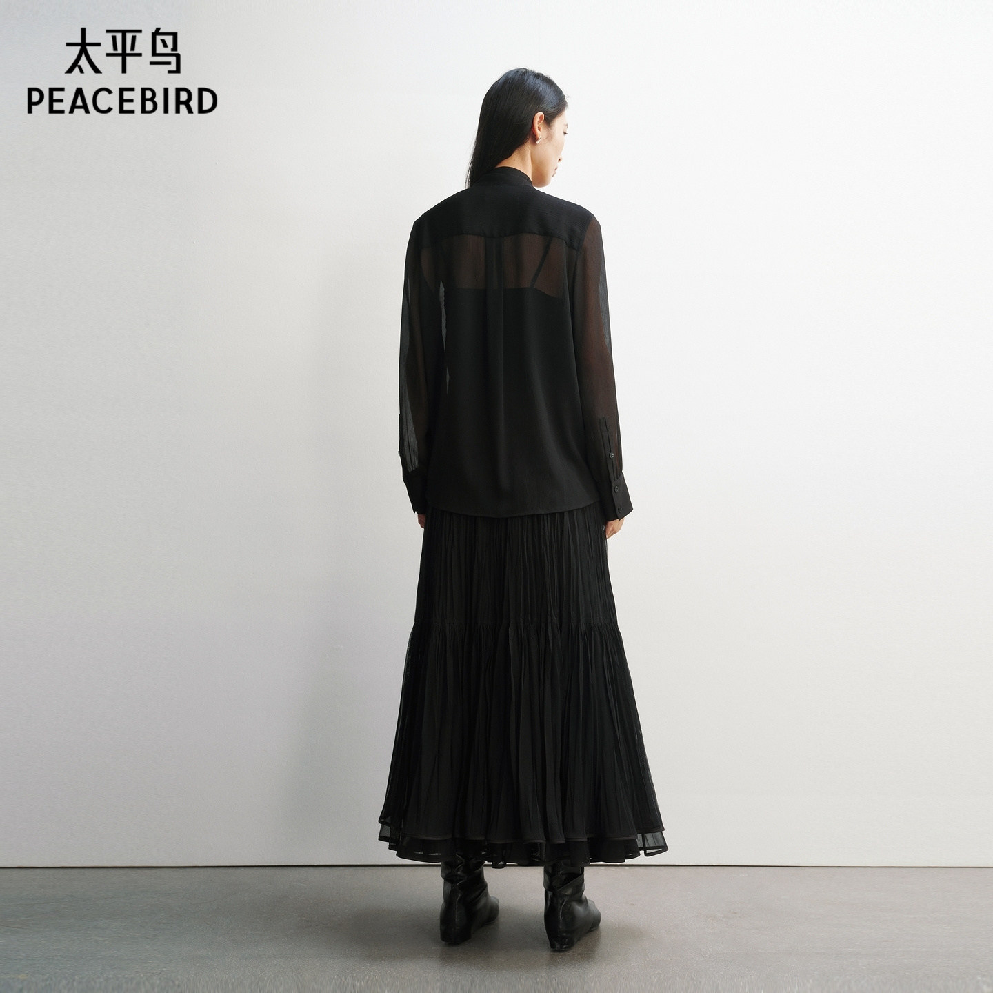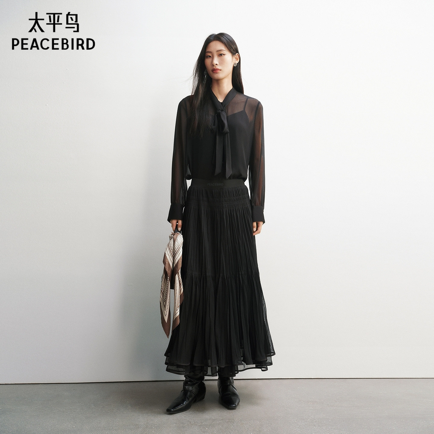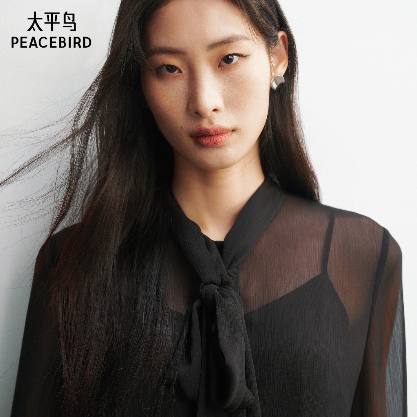 【商场同款】太平鸟26春季新款雪纺飘带长袖衬衫含内衬A1CAG1258