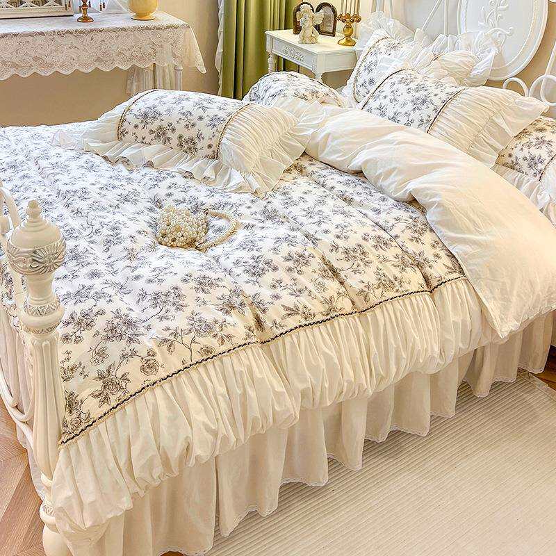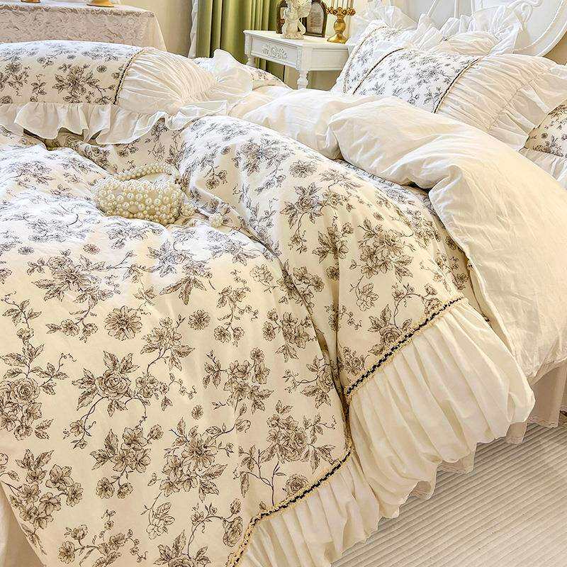 法式田园风纯棉四件套全棉床上用品床裙款2025新款褶皱花边被套罩