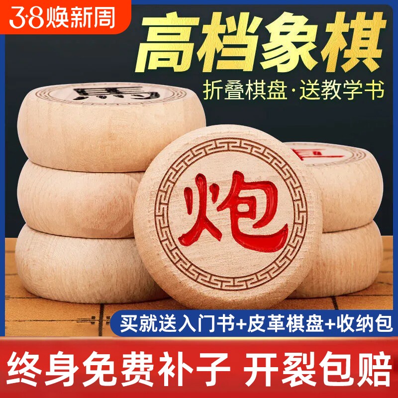 中国象棋实木特大号成人带棋盘橡棋棋子便携式皮革套装高档盘