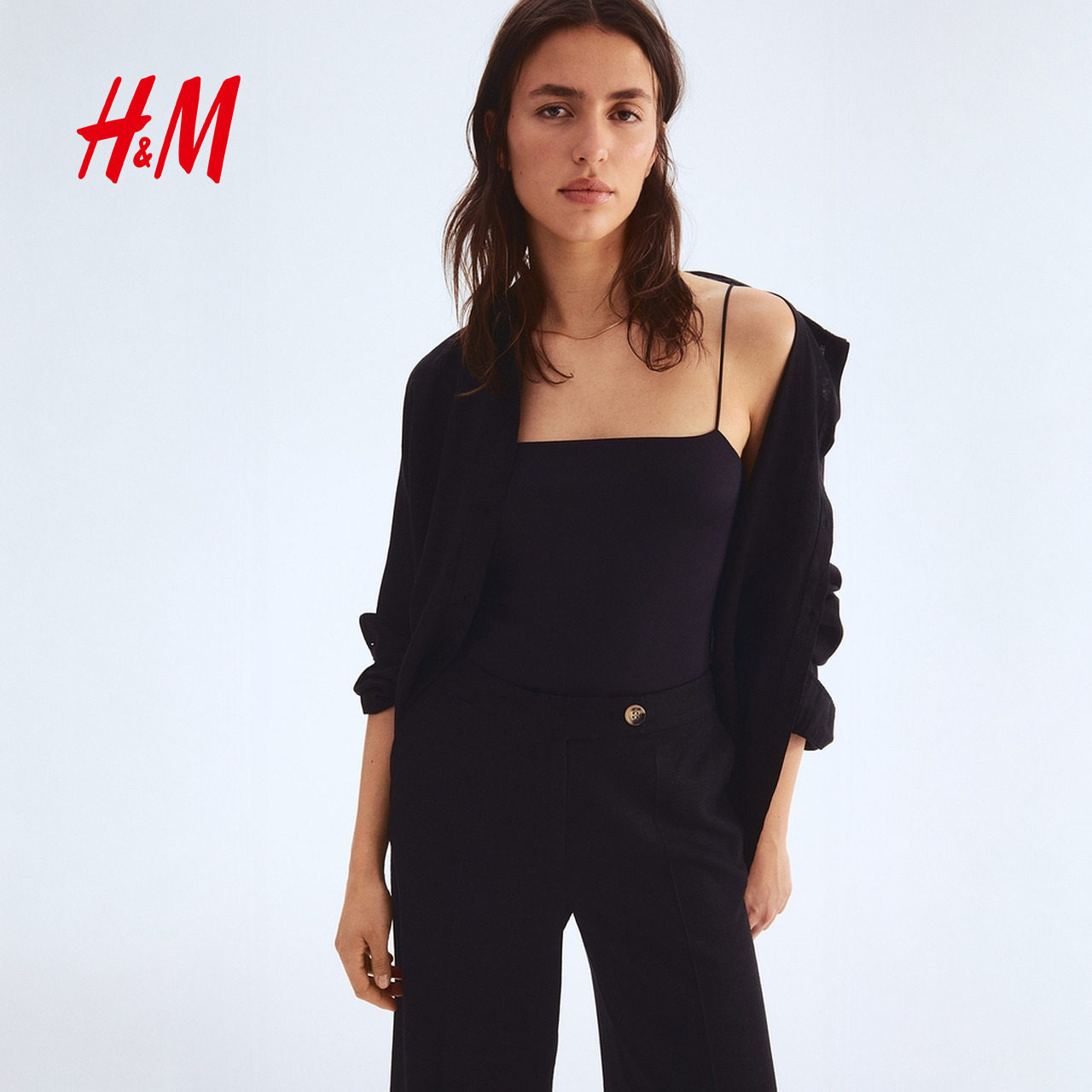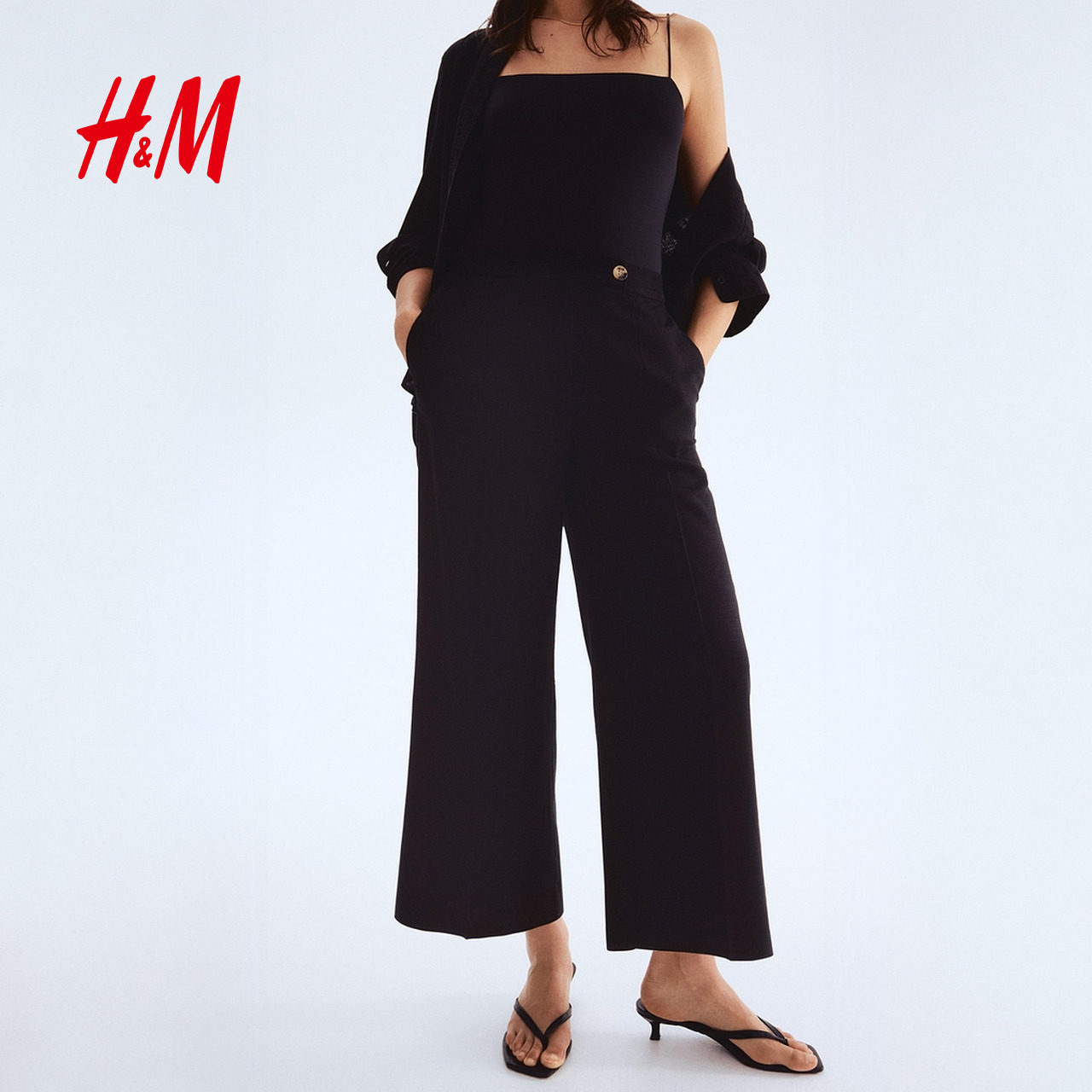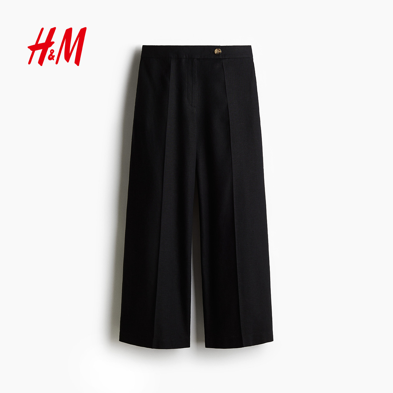 HM休闲裤2025年新款时尚女装亚麻混纺精裁长裤1283570